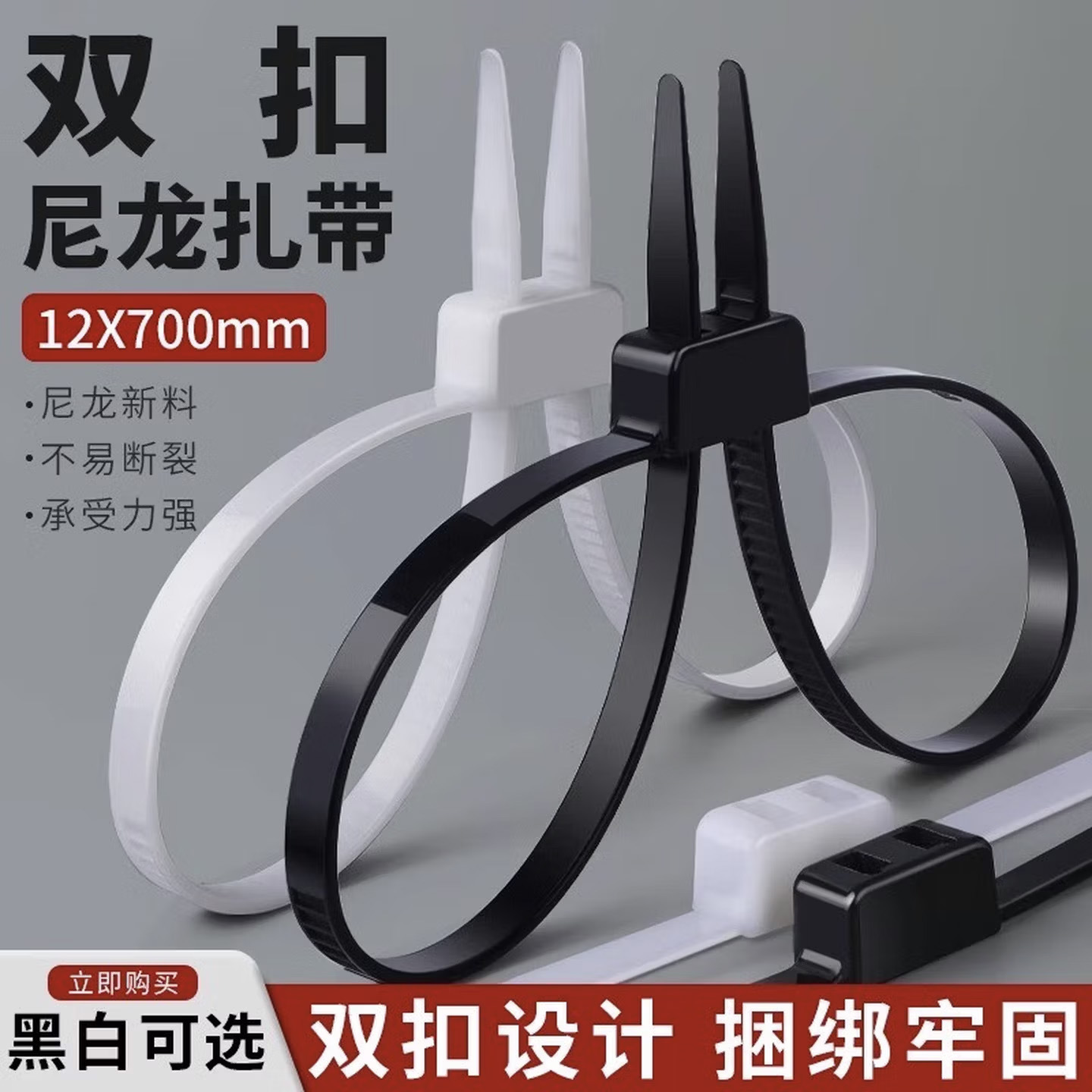 扎带尼龙双孔束带 双孔双扣尼龙扎线带自锁式扎带12X700扎带蝴蝶
