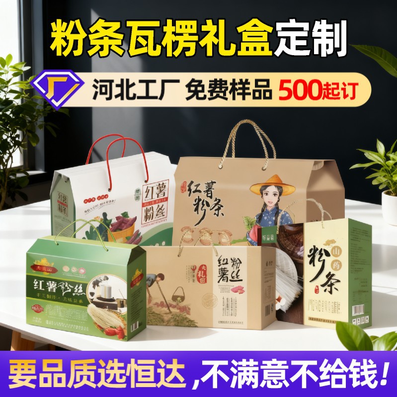 河北厂家薯粉条礼盒加长土豆粉条纸箱土特产彩盒手工粉皮包装盒定