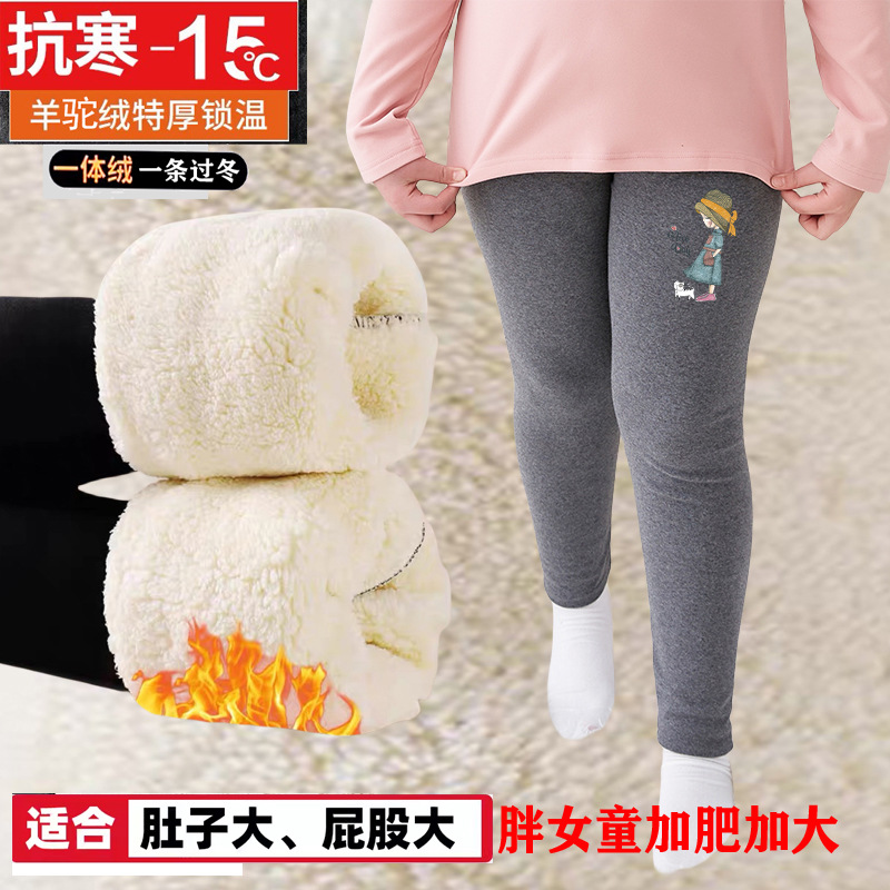太った女の子のズボンは秋冬にベルベットをつけて、韓国版の子羊のベルベットのズボンを厚くして、寒さに強い子供服のカジュアルなズボンを持っています