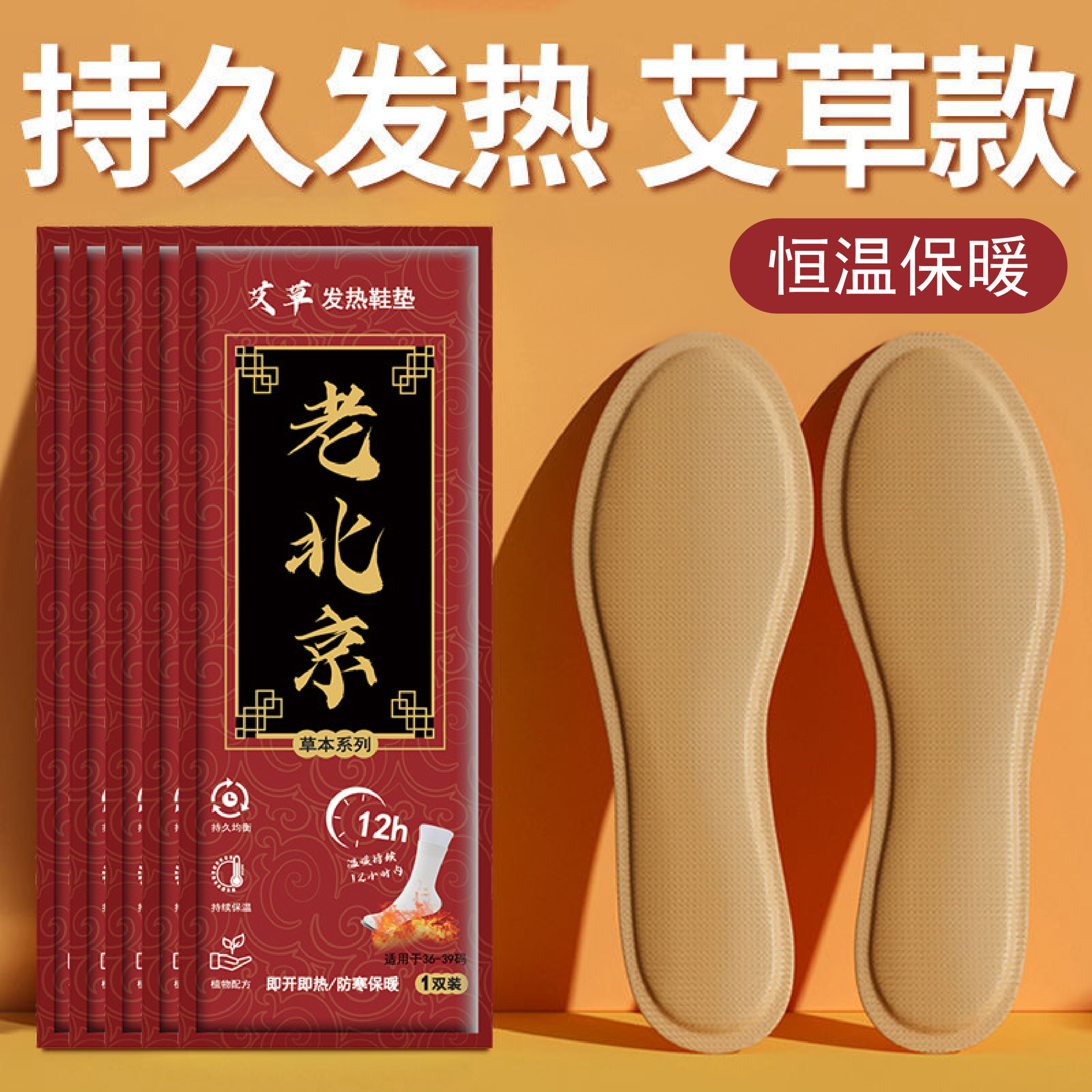 老北京自发热鞋垫冬季防寒保暖发热持久艾草暖鞋垫暖宝宝保暖神器