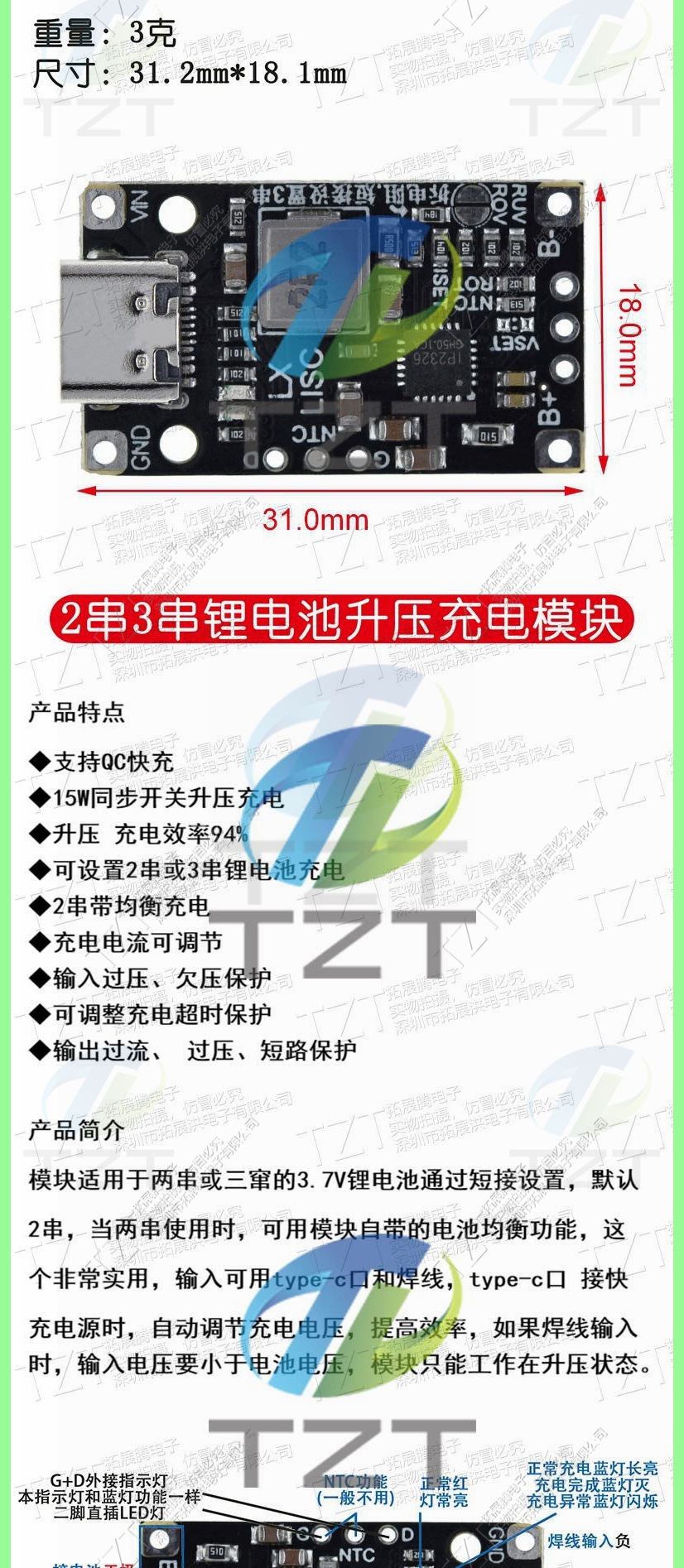 3.7vリチウム電池5v充電器3/2列リチウム電池昇圧充電モジュールはQC急速充電をサポートする