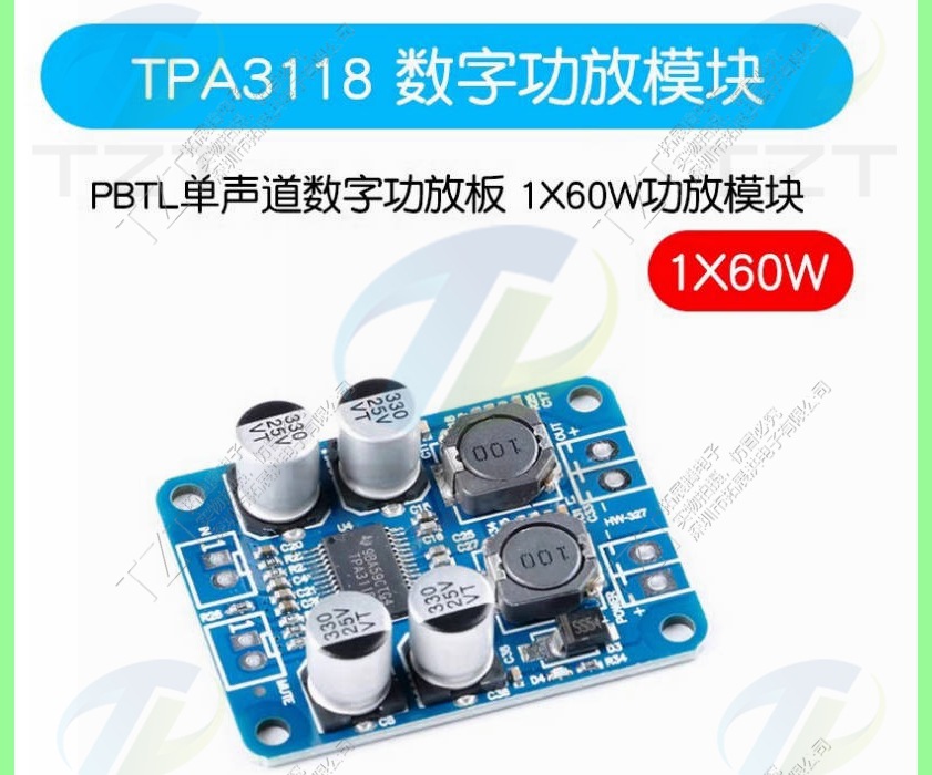 Tpa3118功放板モジュールpbtlモノラルデジタル功放板1x60wオリジナルチップ