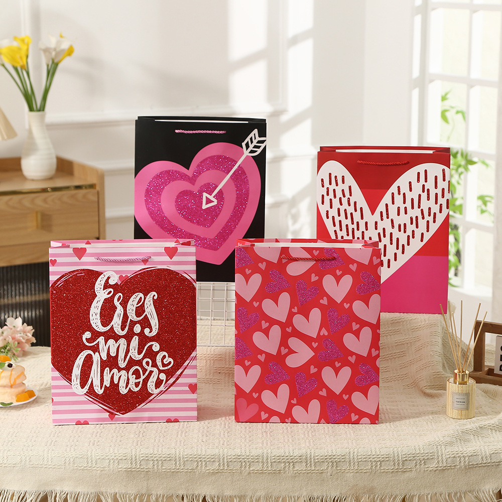 新款情人节爱心印花包装袋通用白卡纸袋礼品袋手提袋商场购物袋