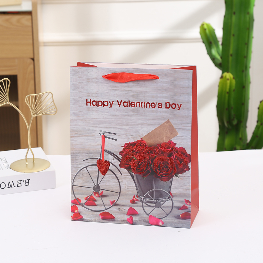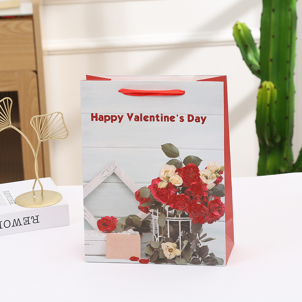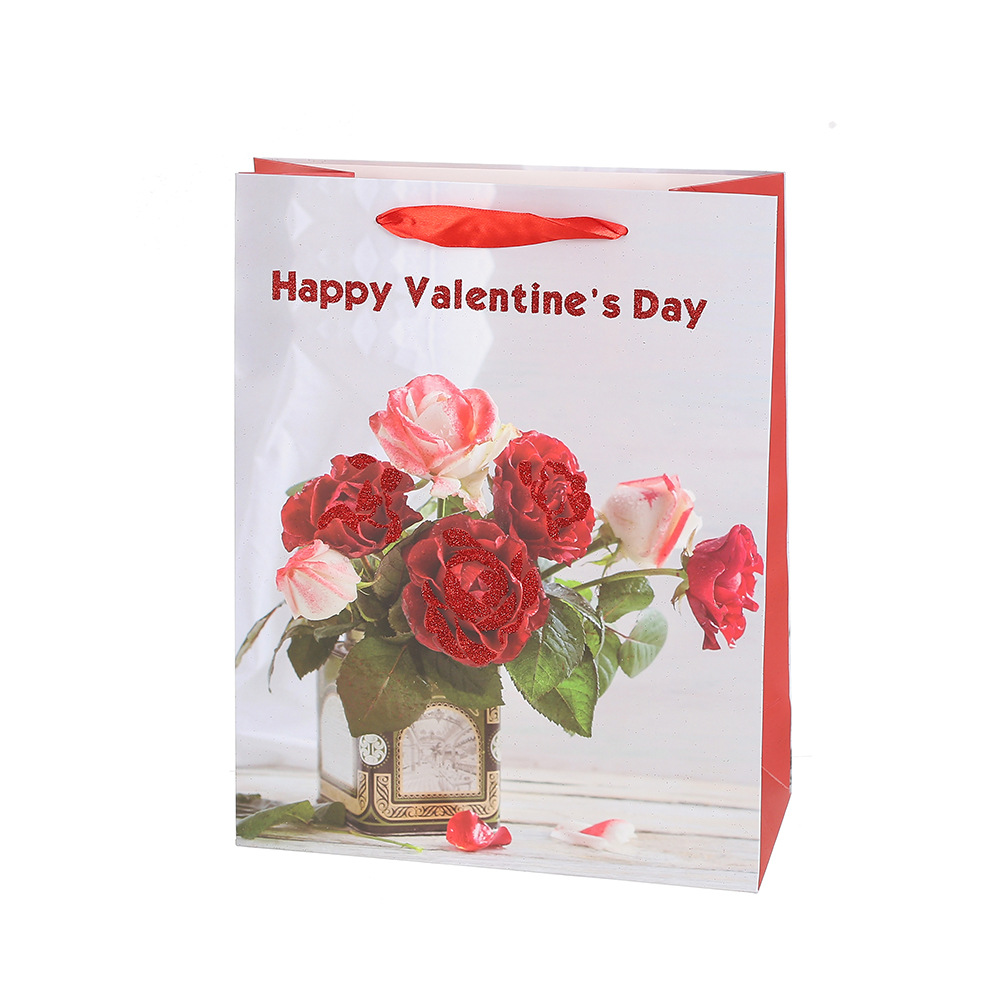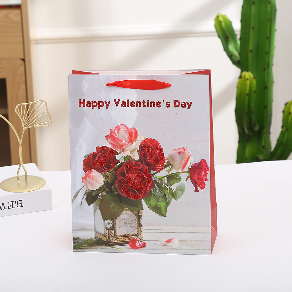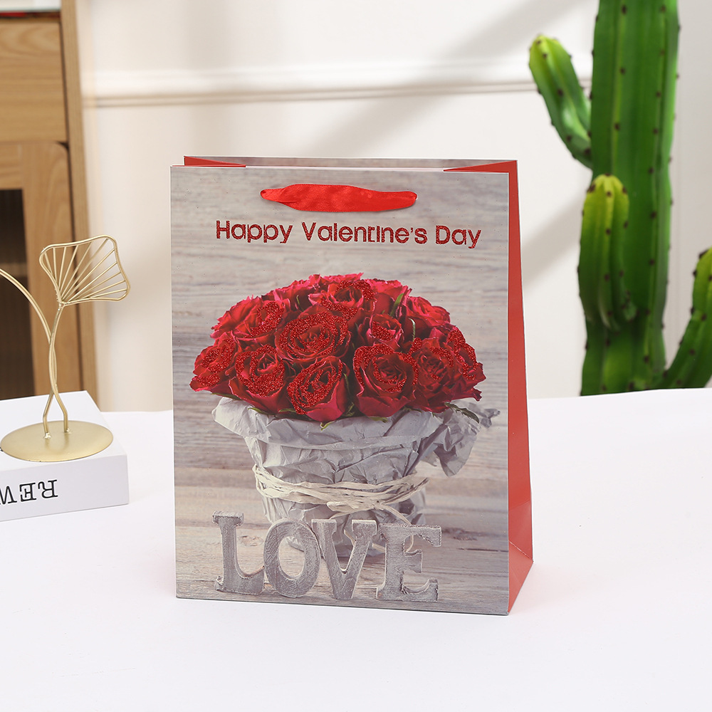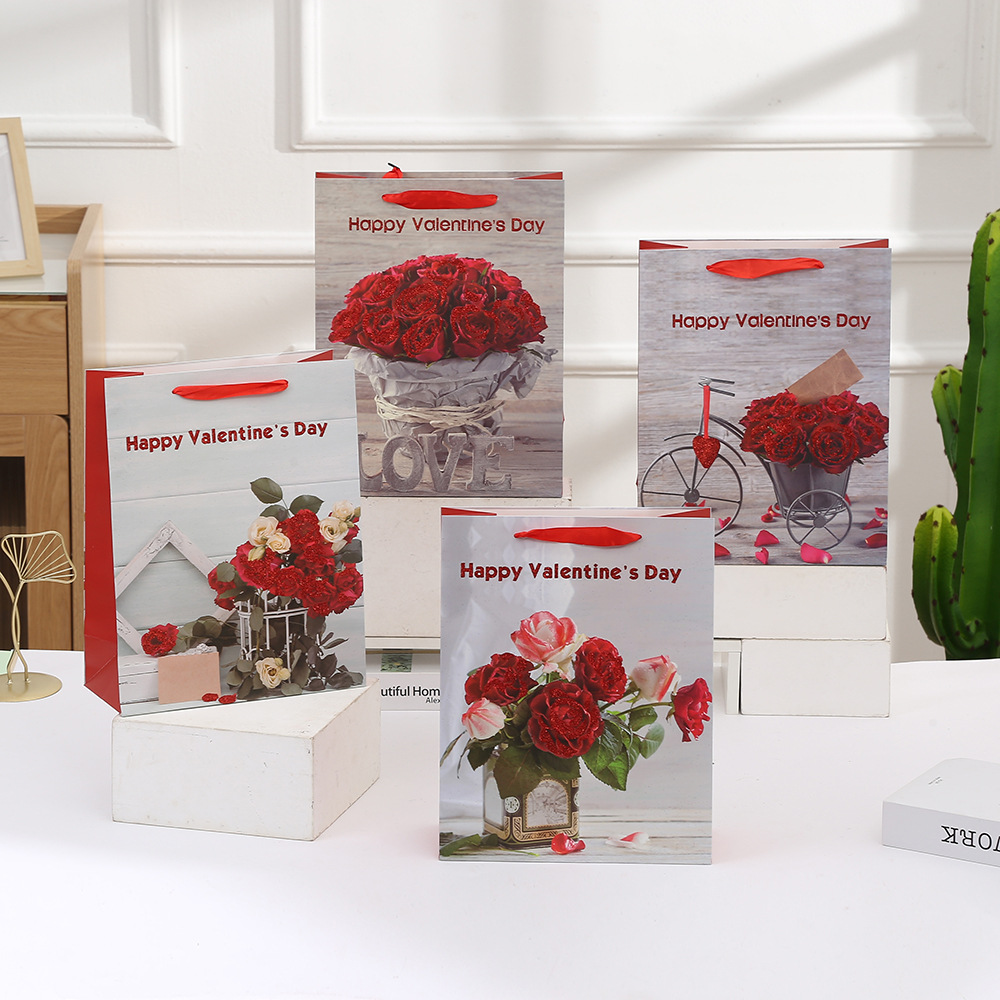 花束ギフトバッグ 赤いバラ柄ショッピングハンドバッグ バレンタインデーギフト包装紙袋