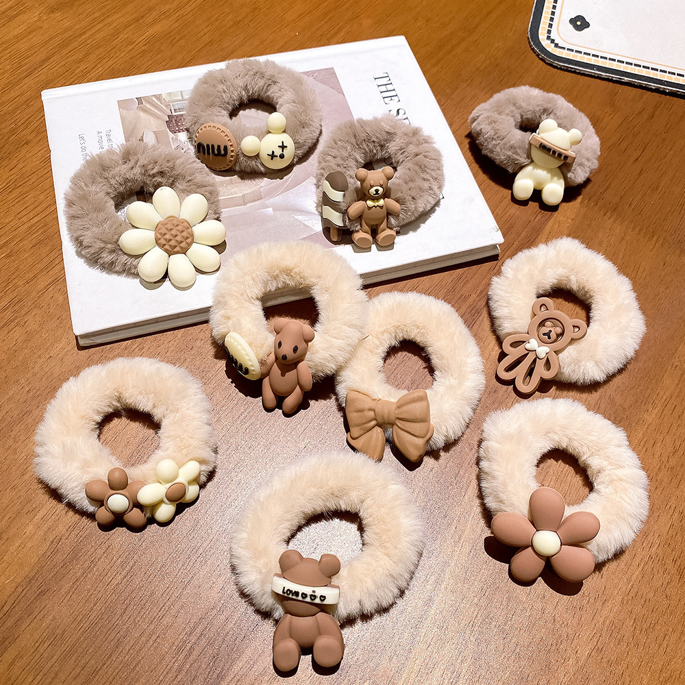 韓国版の高級感のある毛のひもの女子学生は団子の頭の皮の筋の女性の秋冬の新型のかわいいアニメの毛の輪を刺します。