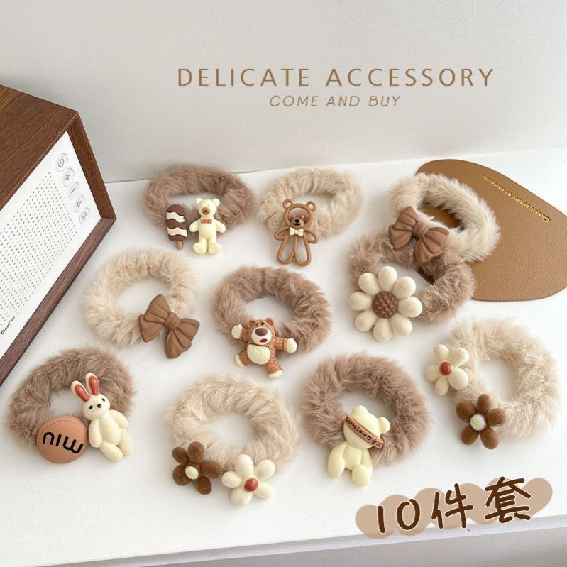柔らかい萌え熊の頭紐が甘い秋冬の柔らかいモチモチの少女は、大きな腸の輪に合わせて髪を刺して髪を伸ばして、シュガーキャンディーが可愛いです。