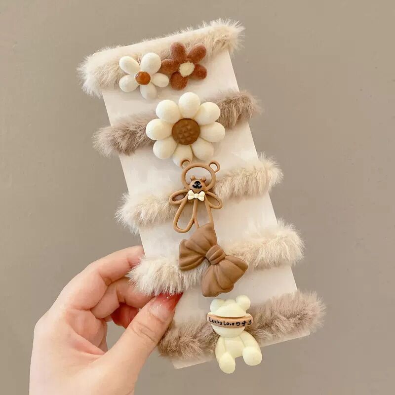 咖色植绒小兔子边夹精致小巧侧边发夹秋冬新款碎发前额鸭嘴夹头饰