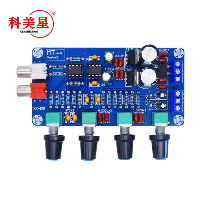 前级音调板,适用于搭配功放使用、可实现音频放大和高、中、低音调节;让您有更好听觉体验;采用的是双核NE5532原装进口芯片 供电电压是直流DC12-24V