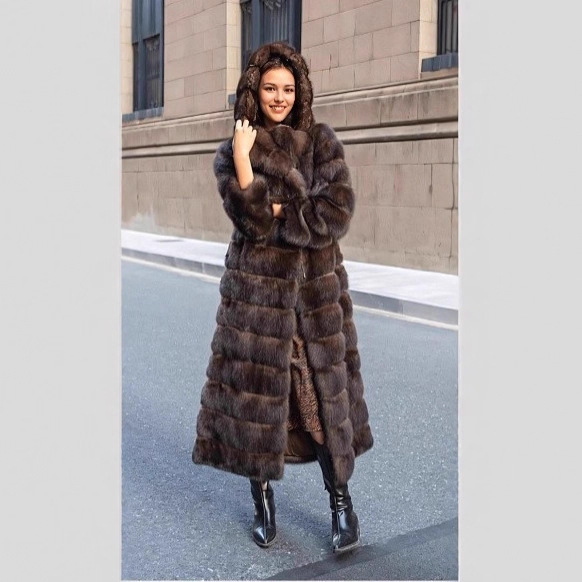 俄罗斯紫貂皮草外套长款女连帽保暖大衣2025冬新款时尚仿水貂皮草