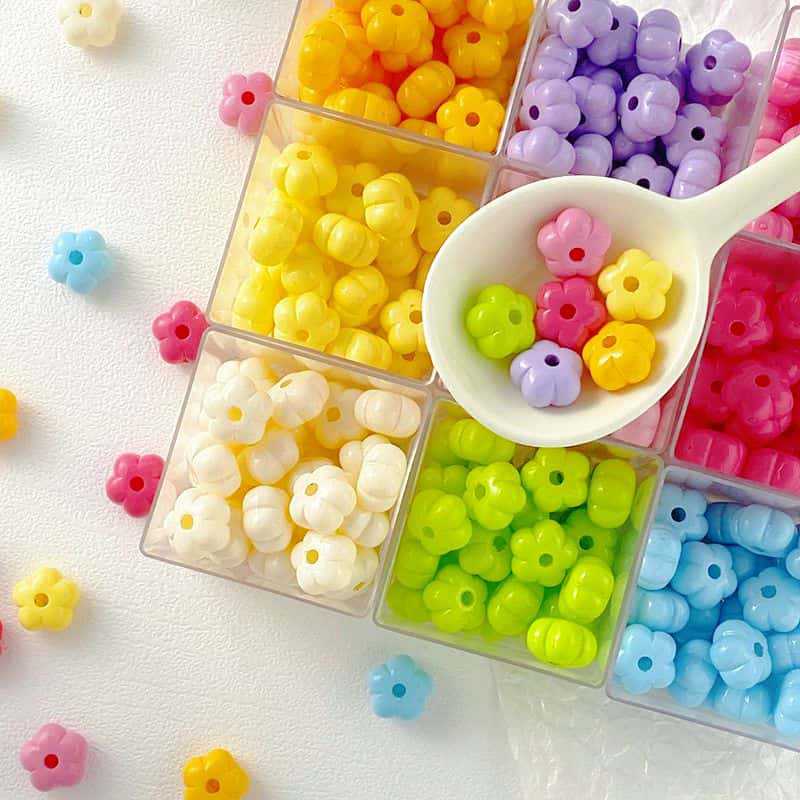 亚克力烤漆实色扁南瓜胖花朵直孔散珠DIY手工串珠手机链饰品配件