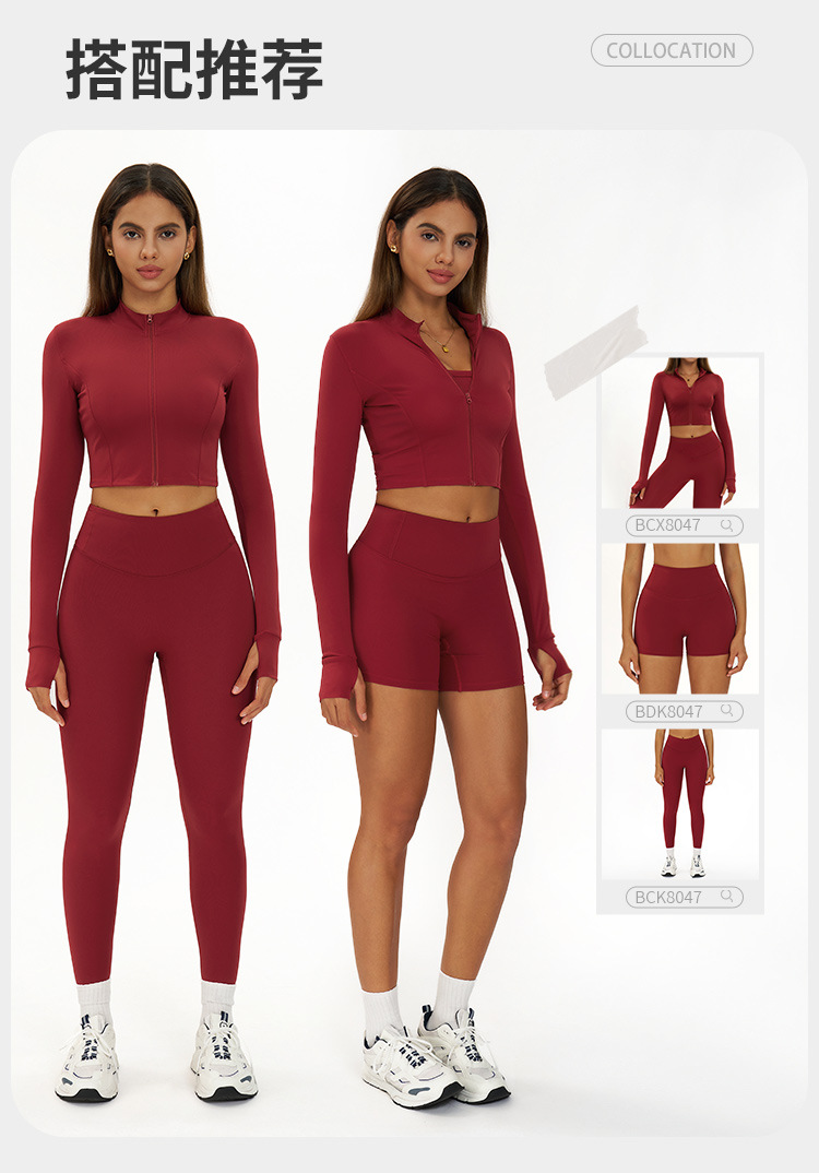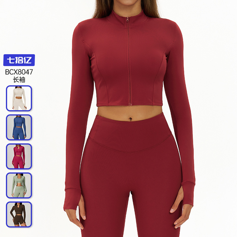 ジッパー屋外ランニングスポーツヨガコート痩せフィットネス長袖コート女子速乾ヨガ服8047