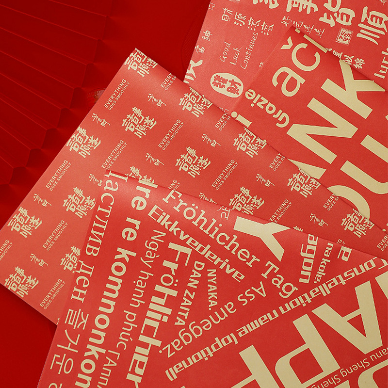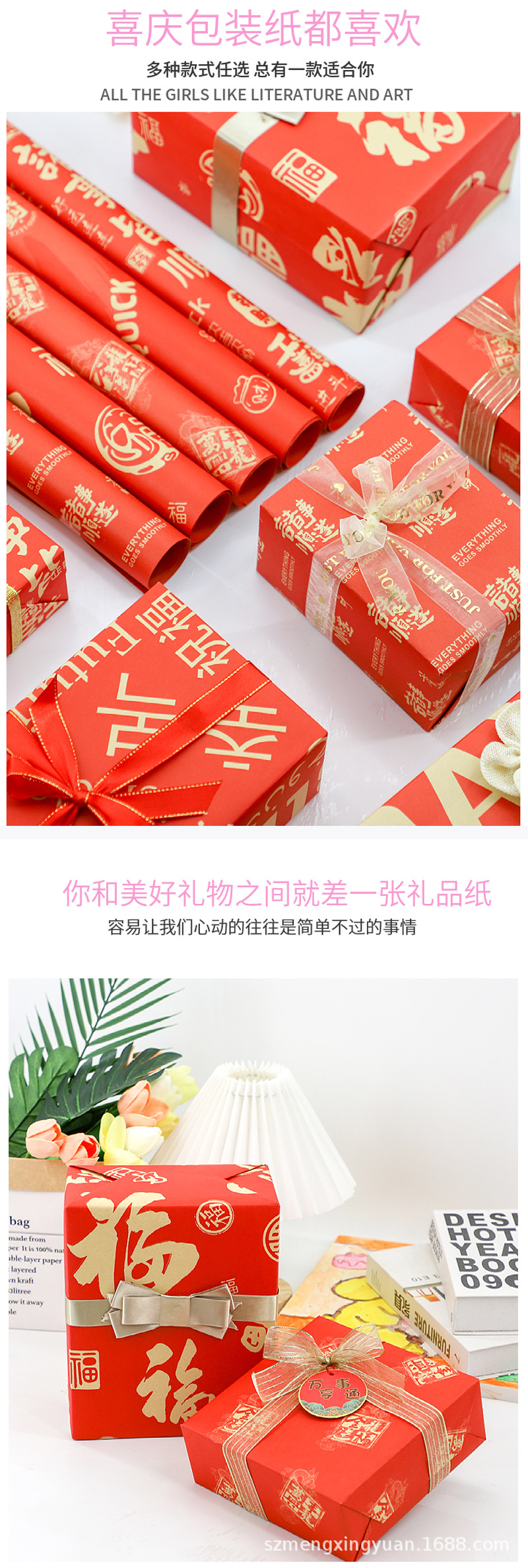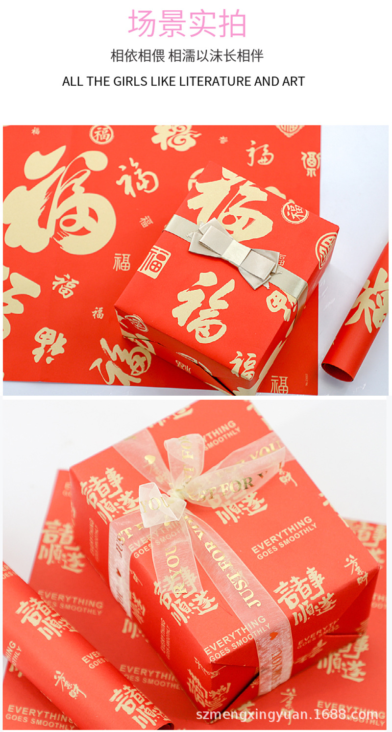 新品中国風おめでたい新年大赤色包装紙元旦年会春節贈答品箱色紙花紙