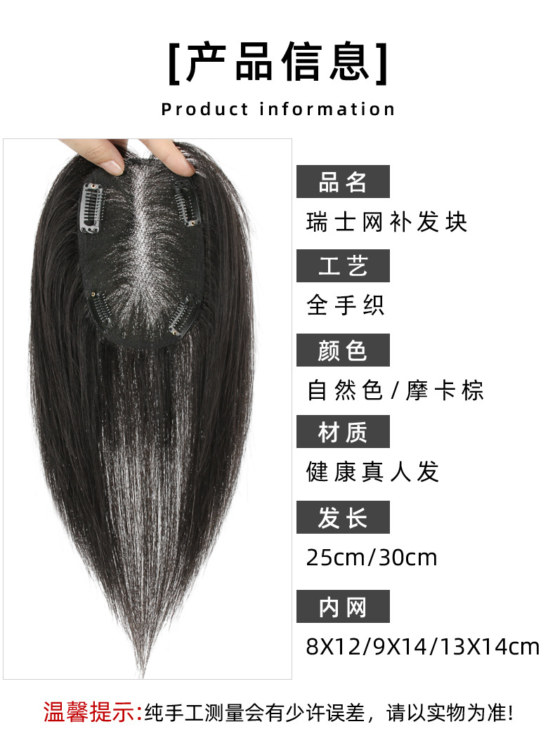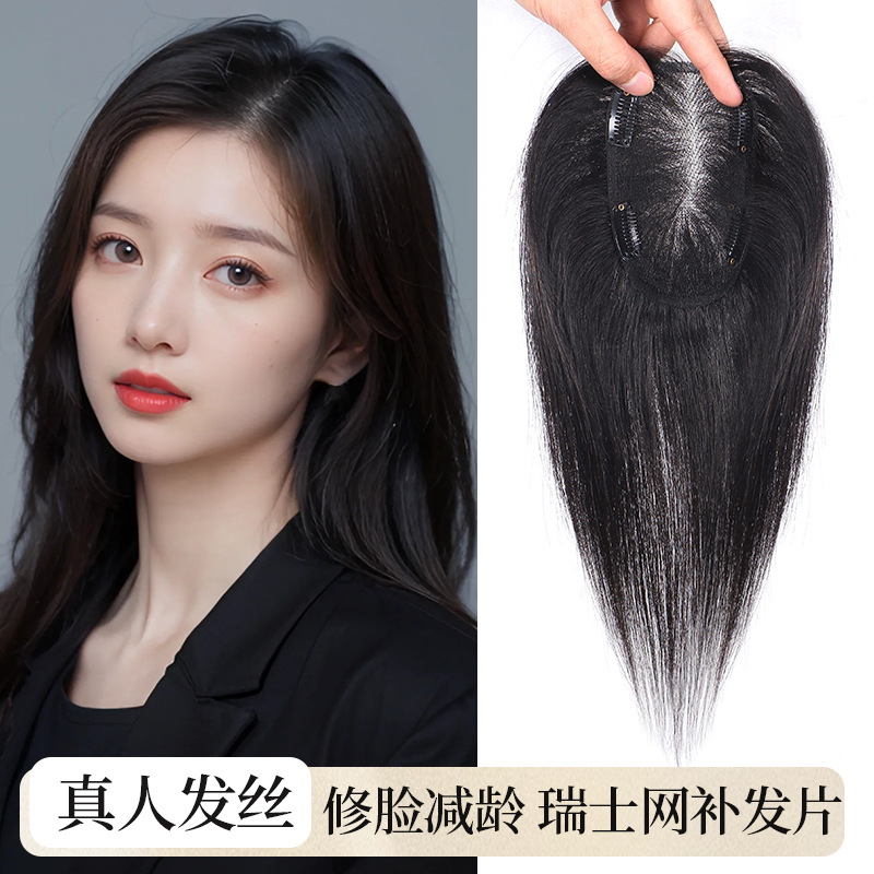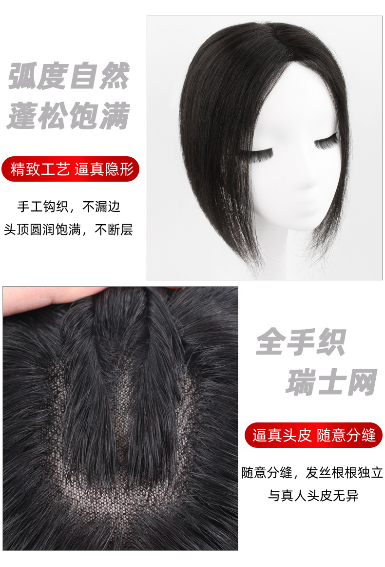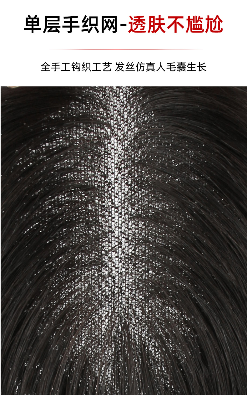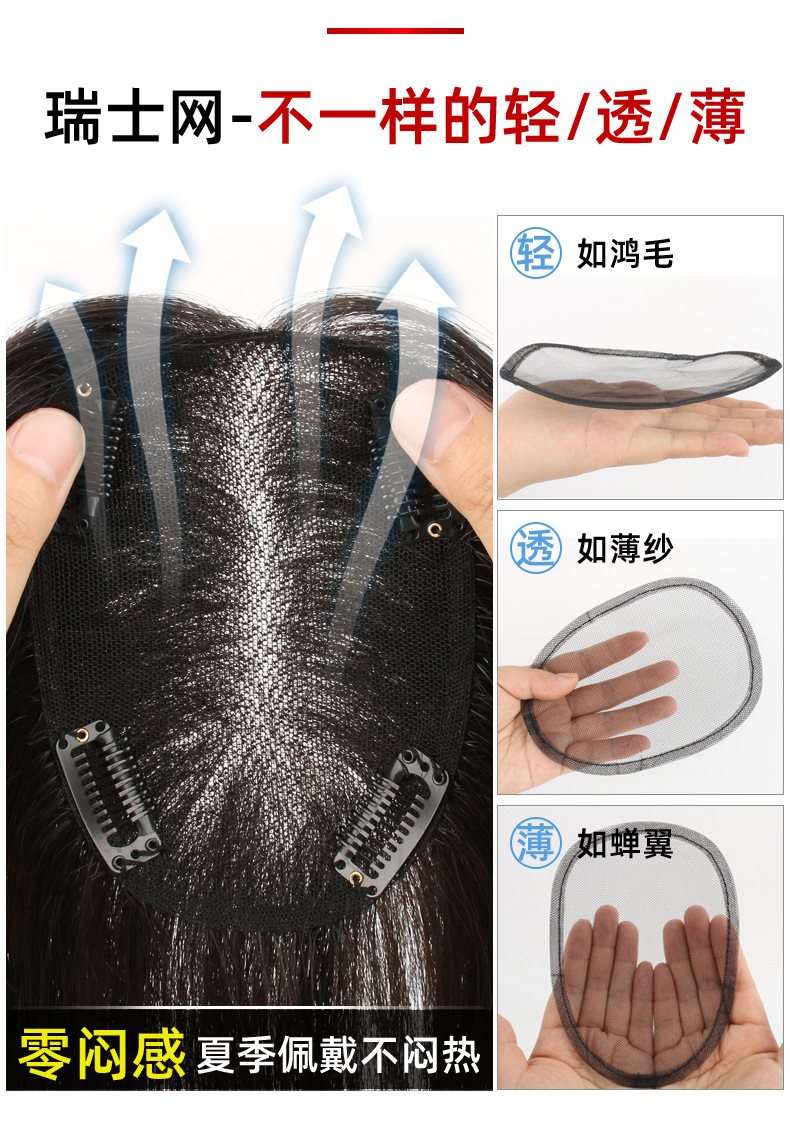 手編みスイスネット人毛ヘアピース、頭頂部用、ボリュームアップ、軽量、通気性、跡が残らない、ネットセレブ愛用、高頭頂部、白髪隠し