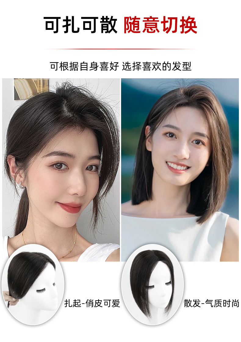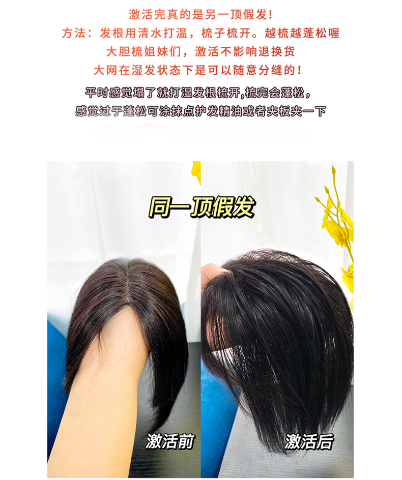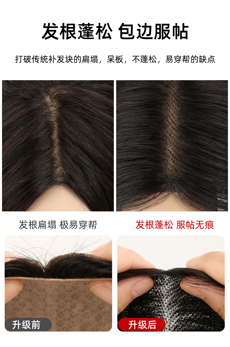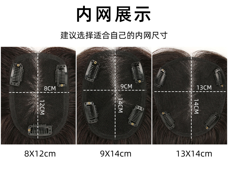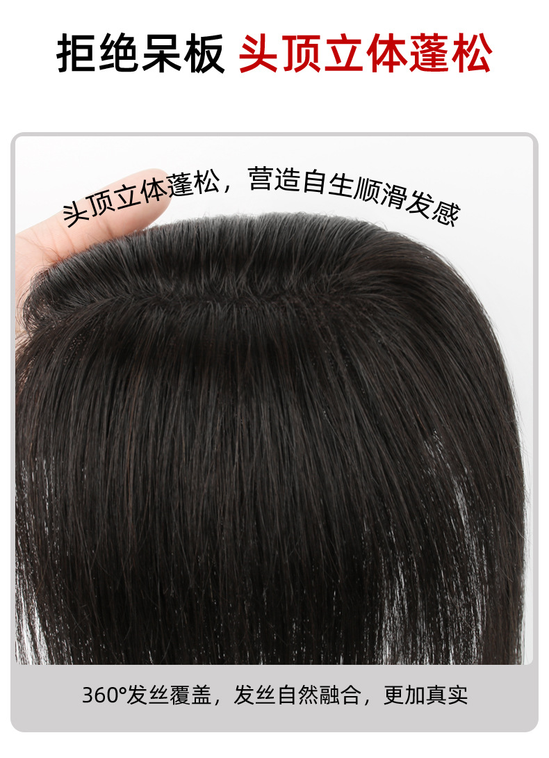 手編みスイスネット人毛ヘアピース、頭頂部用、ボリュームアップ、軽量、通気性、跡が残らない、ネットセレブ愛用、高頭頂部、白髪隠し