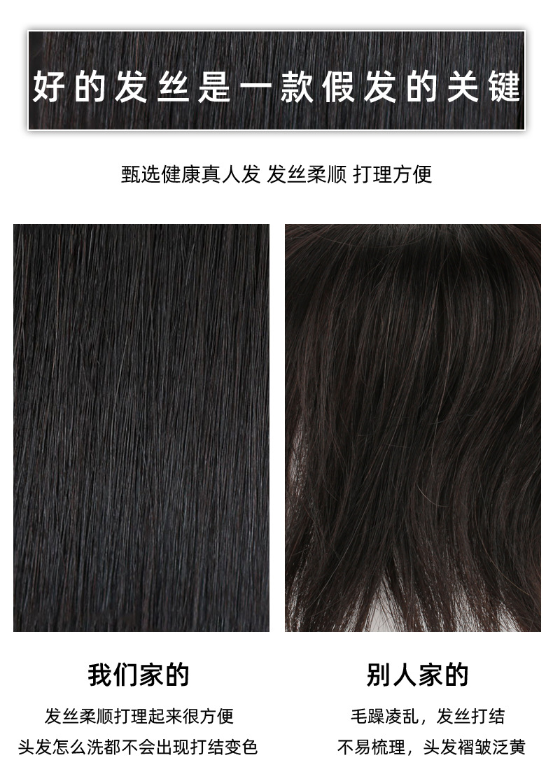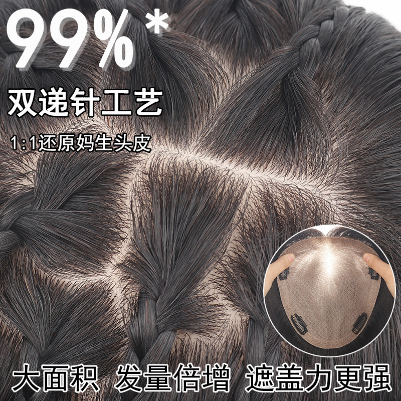 二重針かつらの女性は本当にお下げをしています。髪が薄くて通気性があります。