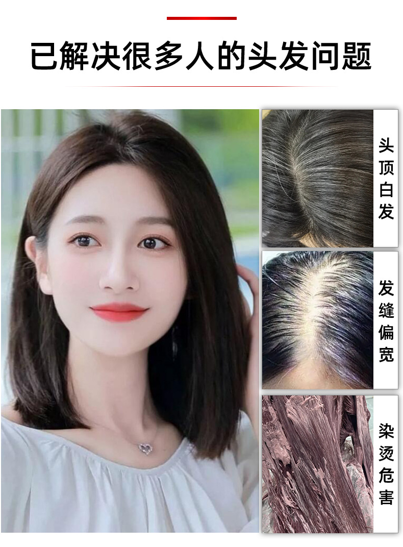 かつらの女性の長い髪の頭の上で髪の毛を補います。大面積は白髪の増発量を遮ります。