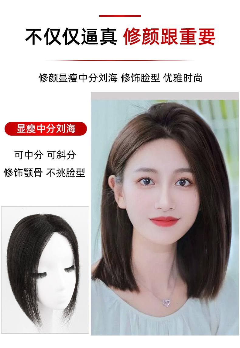 かつらヘアピース 頭頂部用 白髪隠し 増毛 人毛ストレートヘア バイカット 前髪付き 女性用 ロングストレートヘア