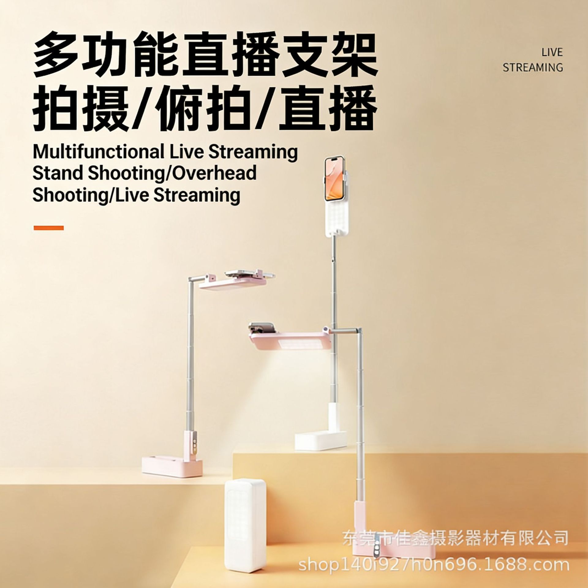 直播俯拍手机支架补光灯通用可折叠多功能支持自拍摄影下巴补光灯