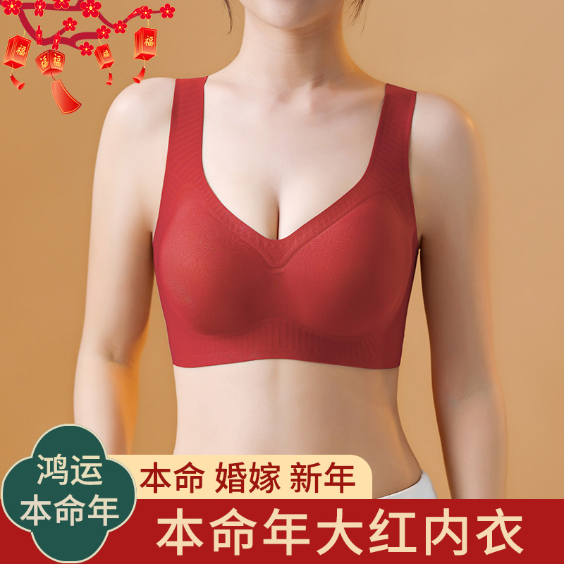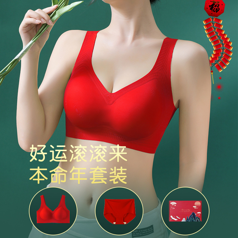 本命年大赤色無痕下着セット女性結婚新婦無鋼圏ブラジャー