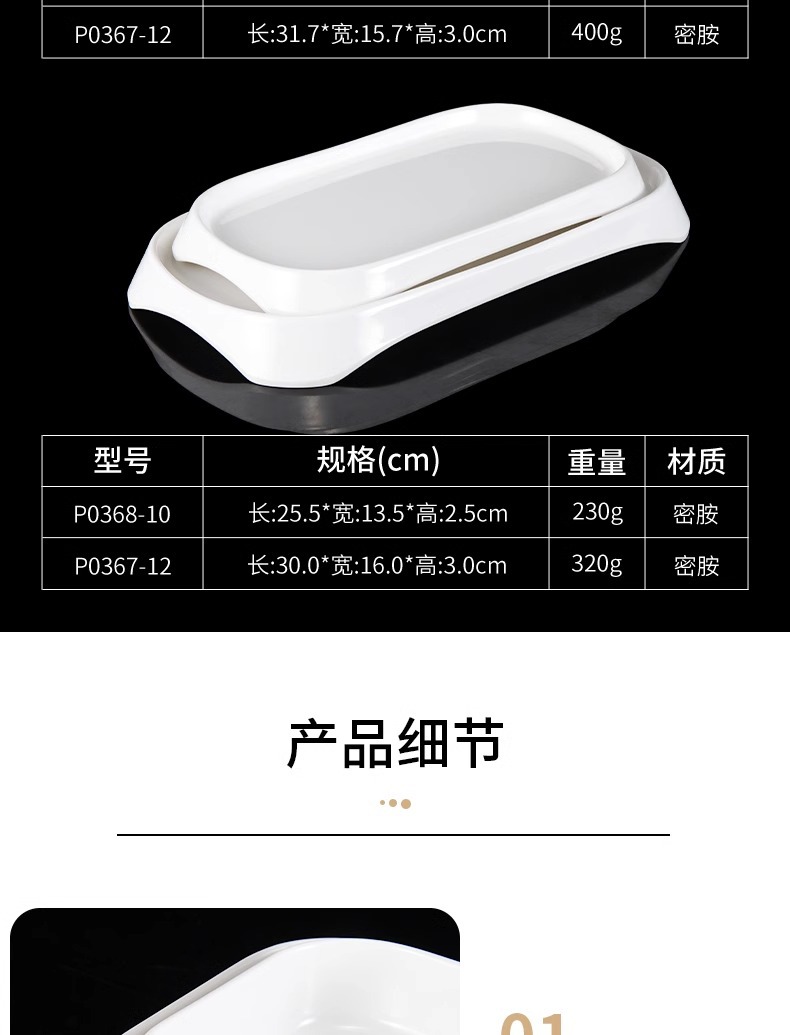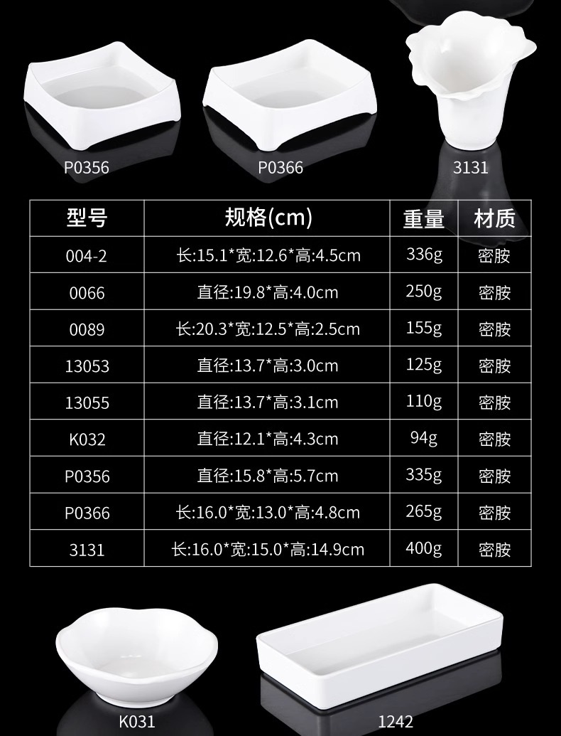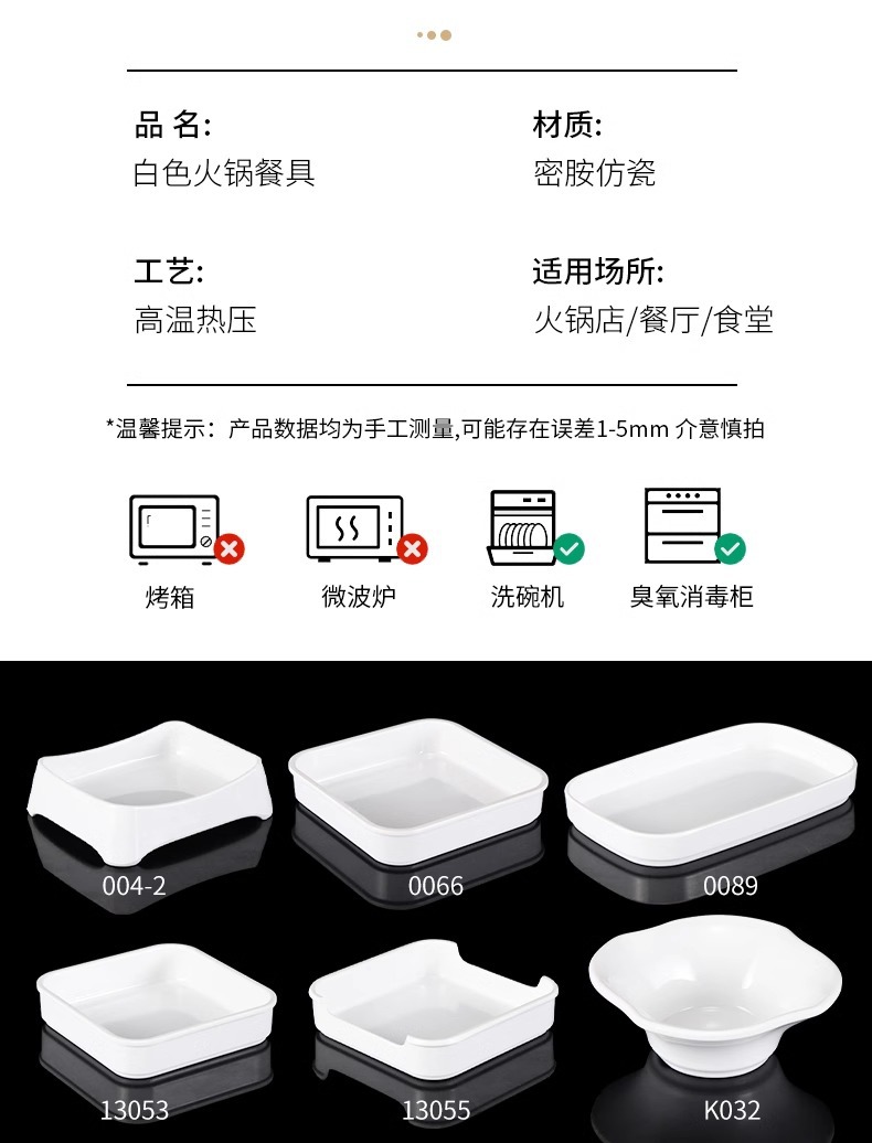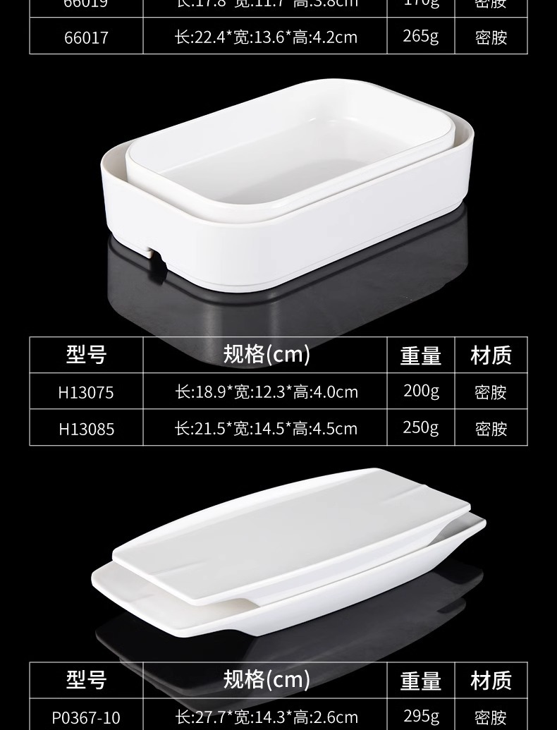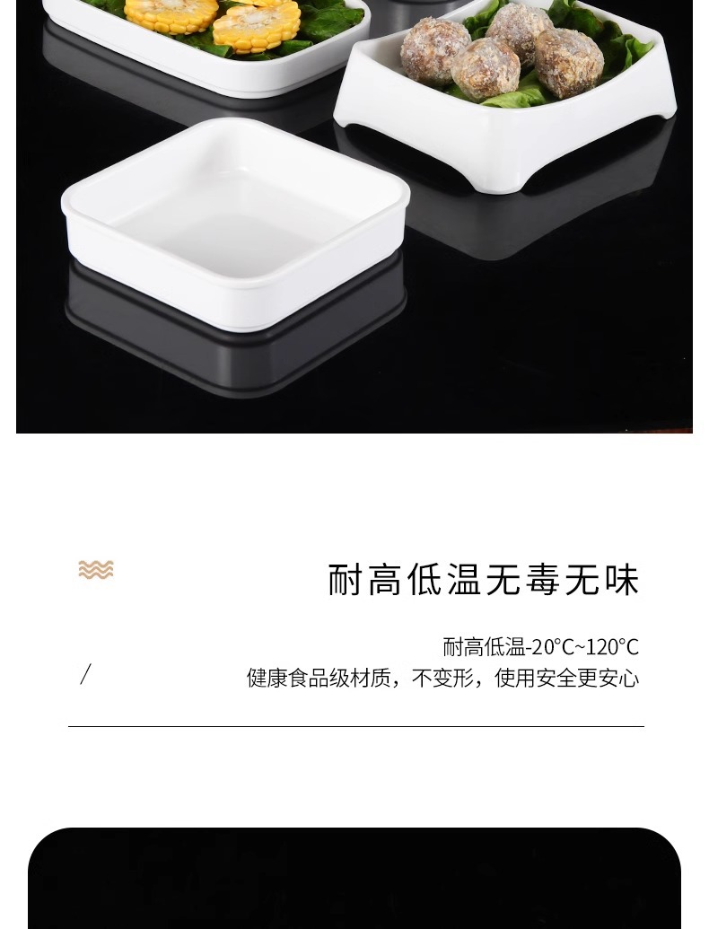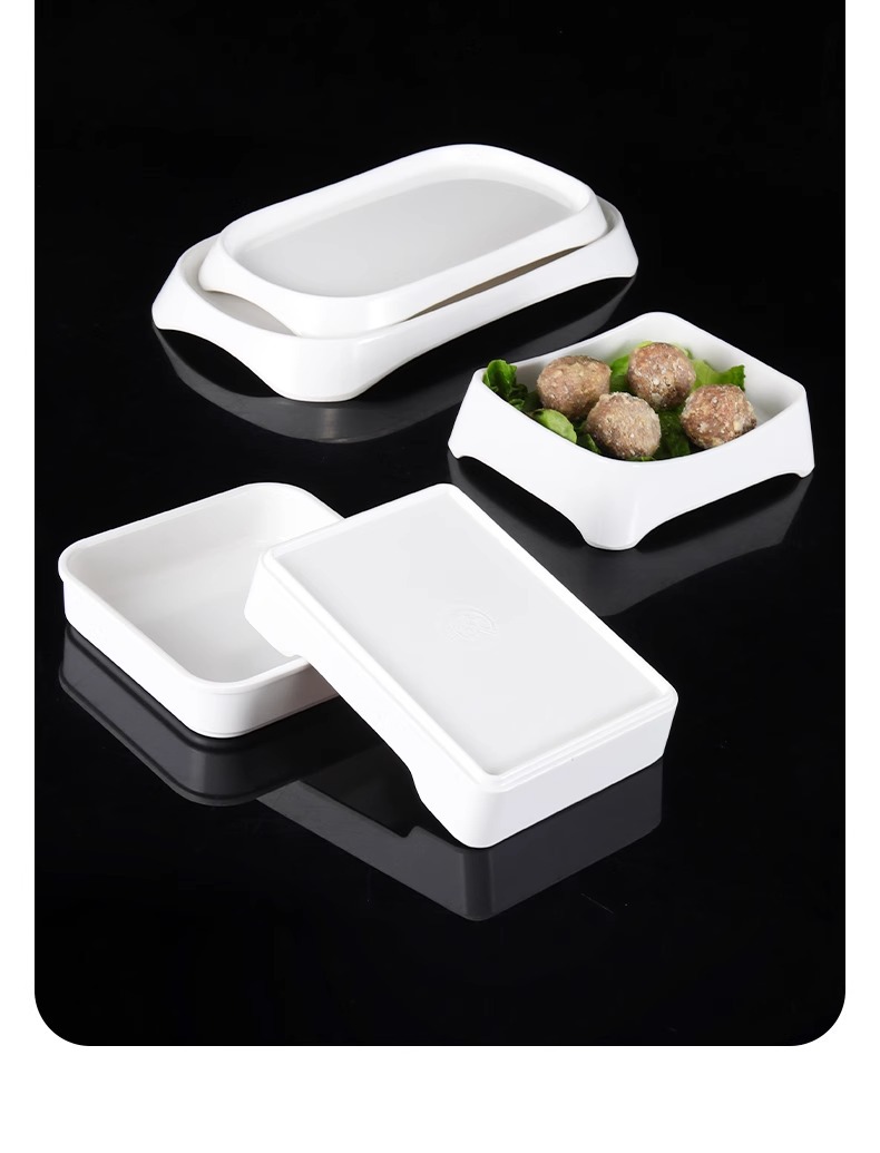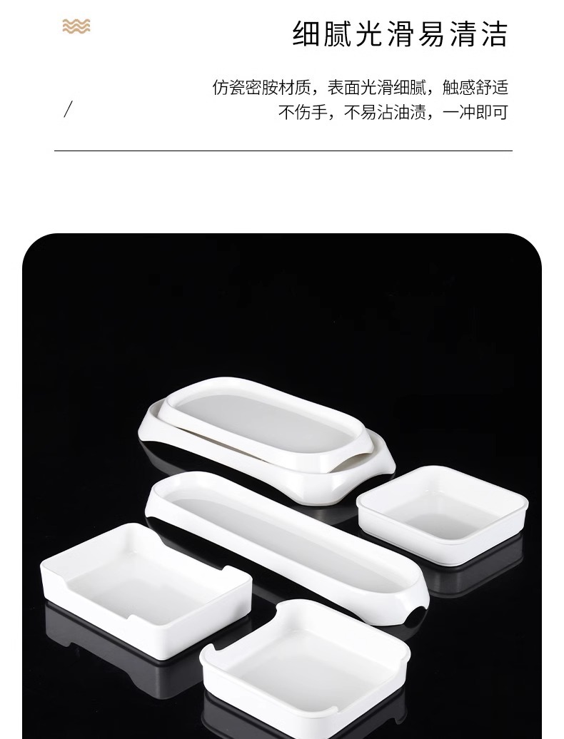 白い牛肉鍋皿メラミン潮汕火鍋店専用おかず皿長方形寿司ケーキ皿商用
