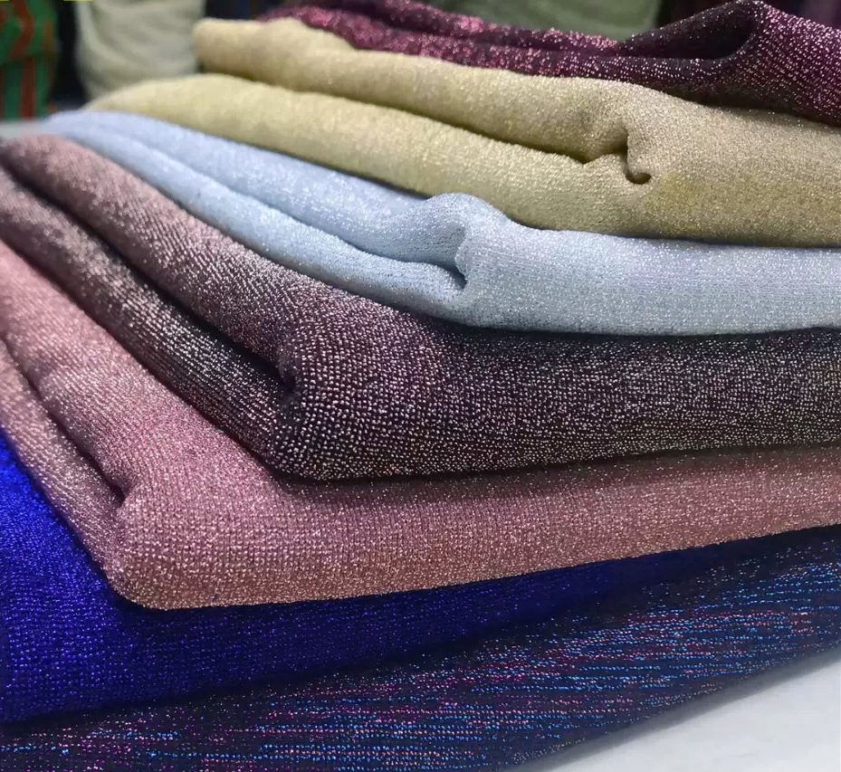 スポット金銀ワイヤー厚い糸布グリッター布光沢のあるシルクニット生地ステージパーティードレス工場直販