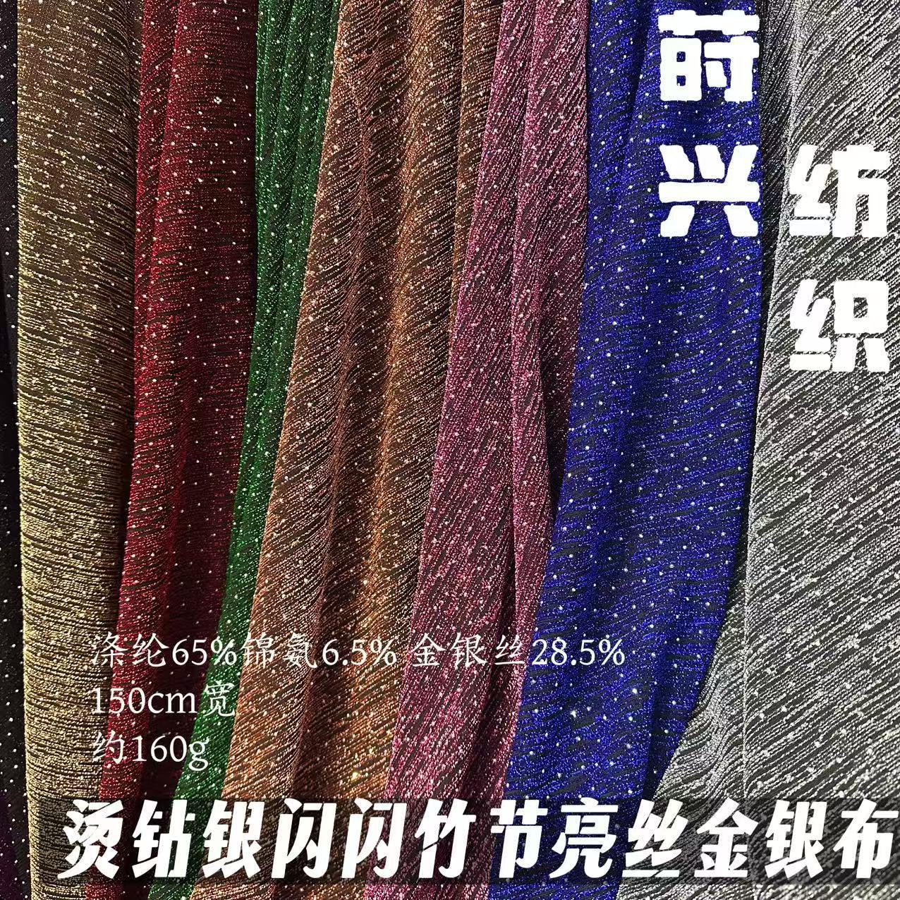 烫钻金银弹力竹节丝亮丝竖条布 时装箱包礼服舞台服洛丽塔演出裙