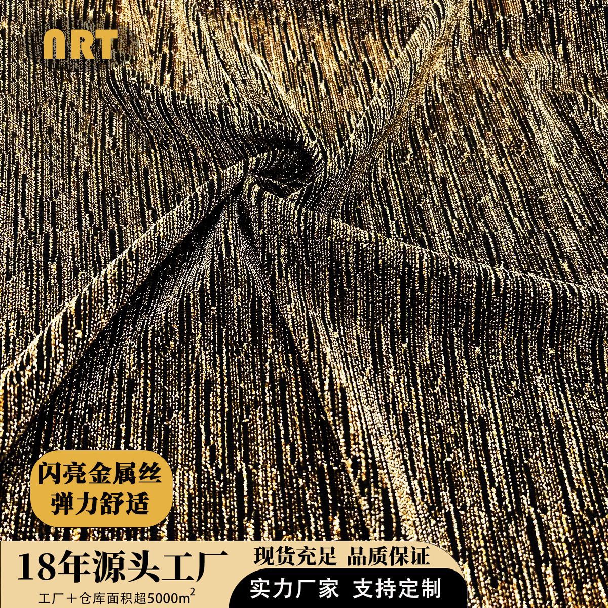 竖条金属丝面料 氨纶弹力流星雨 金银丝布料礼服宴会晚会厂家直销