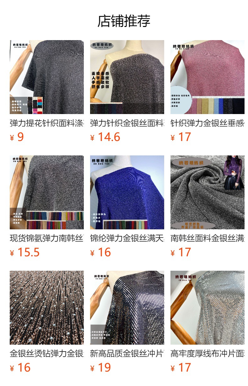錦氨弾性韓国製シルク生地、メタリックシルク、金銀糸生地、柔らかく光沢のある柯橋工場直販服地