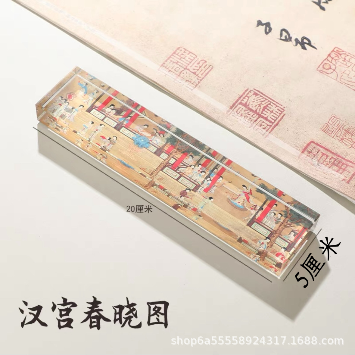 水晶ガラス圧書鎮尺書道圧紙石千里江山図瑞鶴図蘭亭序