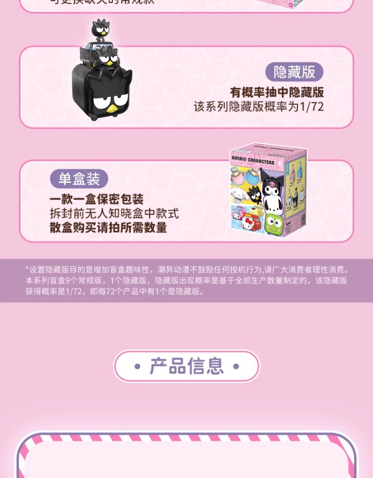 ランダムなサイクリングファミリートラベルノート ブラインドボックス 1 個 (ボックス全体で 9 個),ランダムなサンリオの航海用積み木 1 個 (ボックス全体で 6 個),サンリオ バンプカップ ブラインドボックス ランダム1個(全箱6個入り),サンリオ ガシャポン潜水艦シリーズ ブラインドボックス ランダム1個(全箱6個入り),サンリオ TVシリーズ ブラインドボックス ランダム1個(全箱6個入り),初代サンリオシアターシリーズ ブラインドボックス(全箱6発),二代目サンリオシアターシリーズ ブラインドボックス(全箱8発),タイムアンドスペースジャーニーガチャ( 12cm ),時空の旅 ブラインドボックス ランダム 1 個 (ボックス全体で 9 個),ハローキティ 45周年記念エディション ブラインドボックス ランダム1個(全箱24個入り),初代サンリオ ミニガシャポンマシン ランダム1個(全箱16個入り),二代目サンリオ ミニガシャポンマシン ランダム1個(全箱16個入り),初代ハローキティガシャポン,二代目ハローキティガシャポン,三代目ハローキティガシャポン,サンリオキャンプシリーズ ガシャポン,サンリオ シティ ウォーキング ガシャポン ランダム 1個(全箱10個入り),サンリオシリーズ ライディングファミリー ハローキティ,サンリオシリーズ ライディングファミリー-メロディー,サンリオシリーズ ライディングファミリー~大きな目のカエル~,サンリオシリーズ ライディングファミリー クールペンギン,サンリオシリーズ ライディングファミリー-プリンドッグ,サンリオシリーズ ライディングファミリー(ガレージコンビセット),アオフェイ Q ペット-レディ,Aofei Q ペット-シャオアイ,Aofei Q ペット-ミリー,Aofei Q Chong-Happy Sheep,Aofei Q Chong-Maiqi,Aofei Q ペット (セット A),Aofei Qペット(セットB)