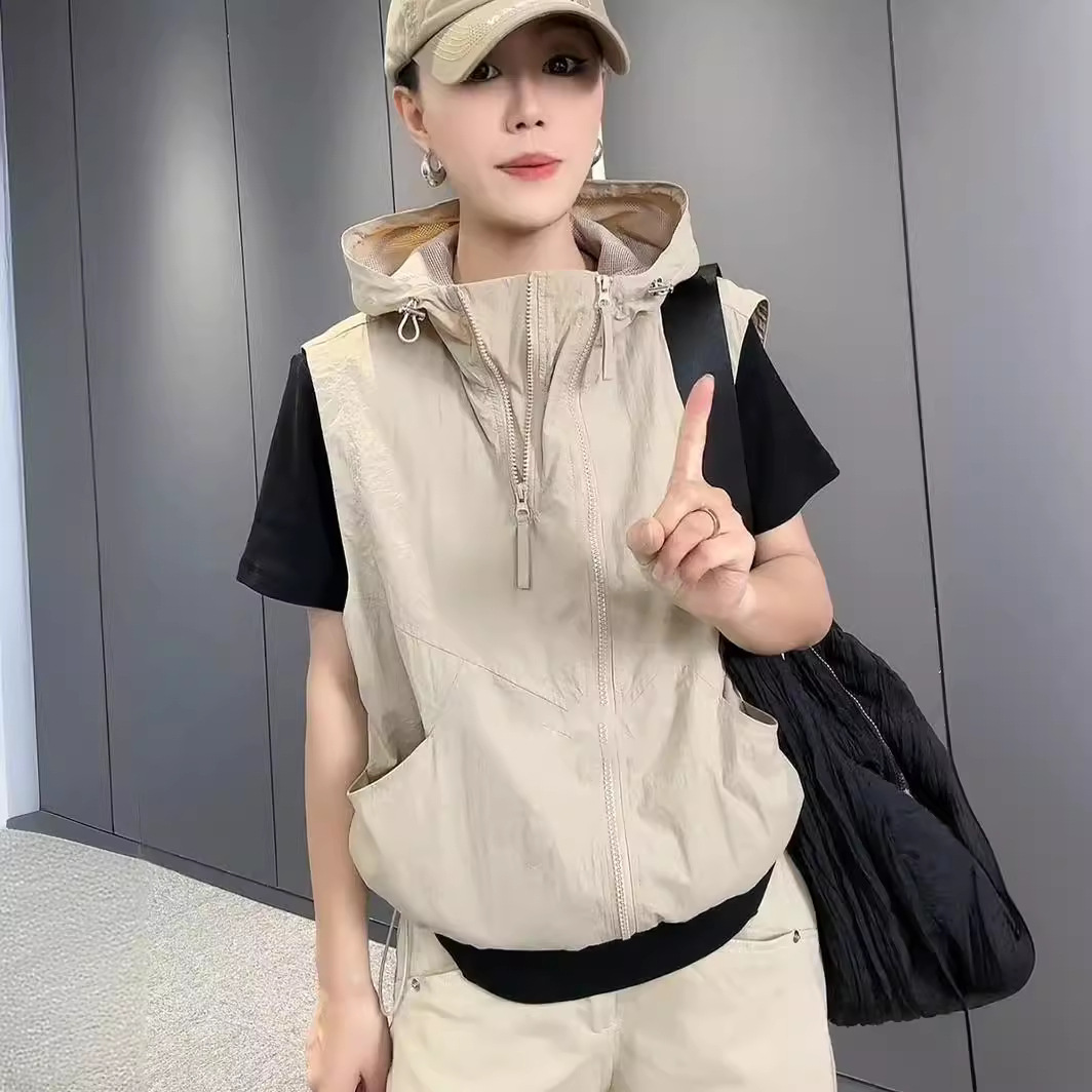 フード付きノースリーブ通気性ジャケットベストジャケット女性の 2025 春と夏の新しい日焼け止め服多用途カジュアルトップカーディガン