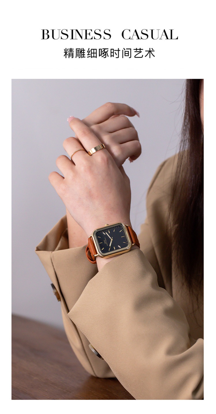 専門店の正規品の小さい四角形の腕時計の女性のタイプの真牛のベルトの防水ネットの赤い生放送の人気の爆発の爆発の金の2024新型の時計