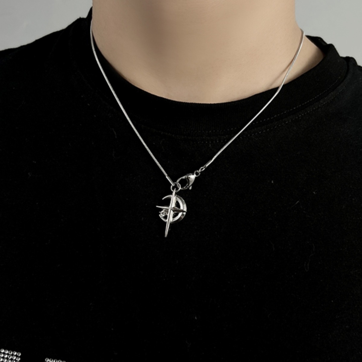 星月芒星水ドリルの大衆デザインの高級感シンプルなヒップホップのファッションチタン鋼のネックレスの男女の潮の高い街はかっこいいです。