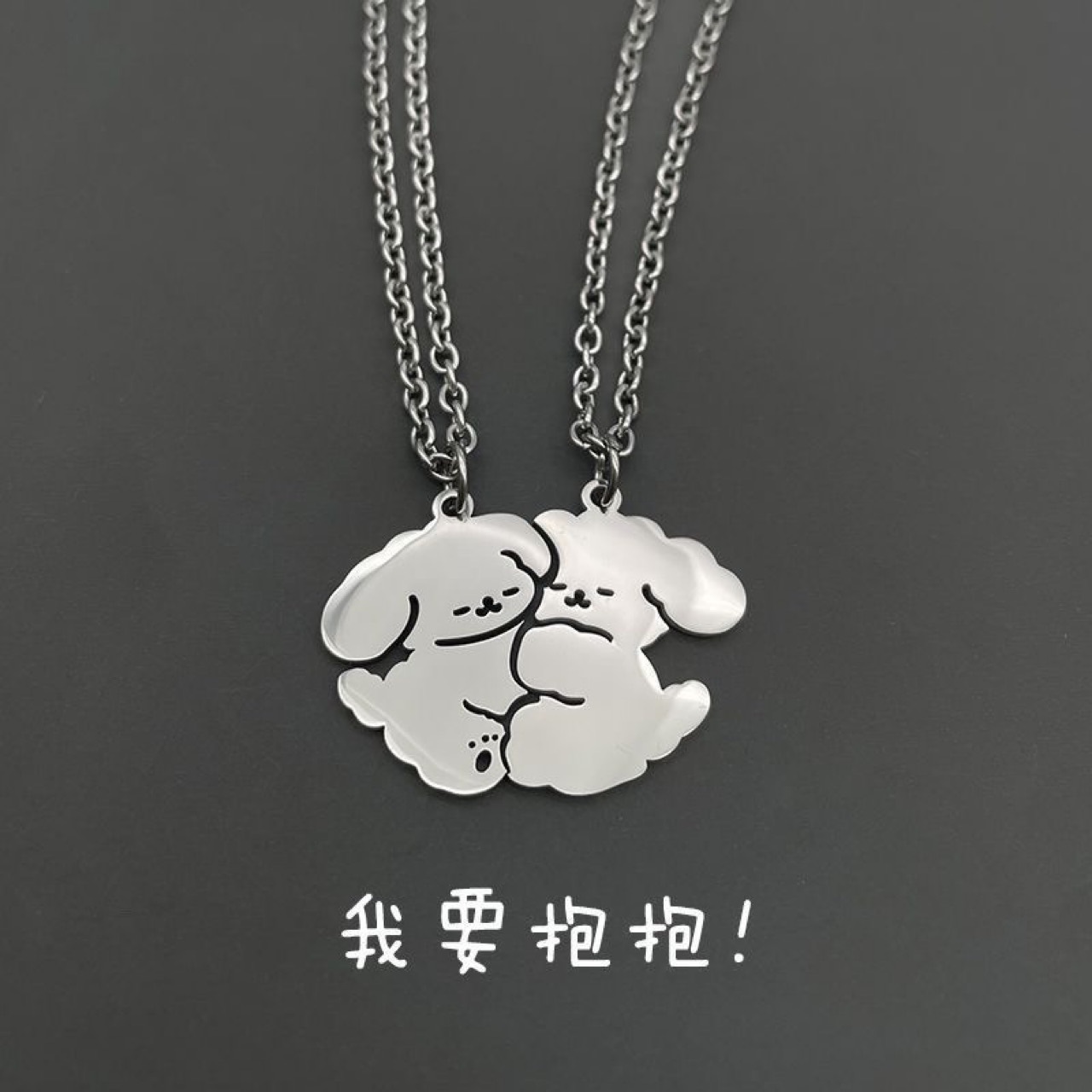 我要抱抱不锈钢小狗情侣项链男女款学生闺蜜可爱酷潮百搭钛钢饰品