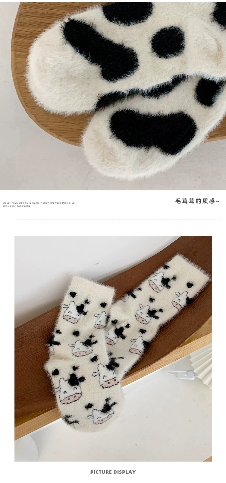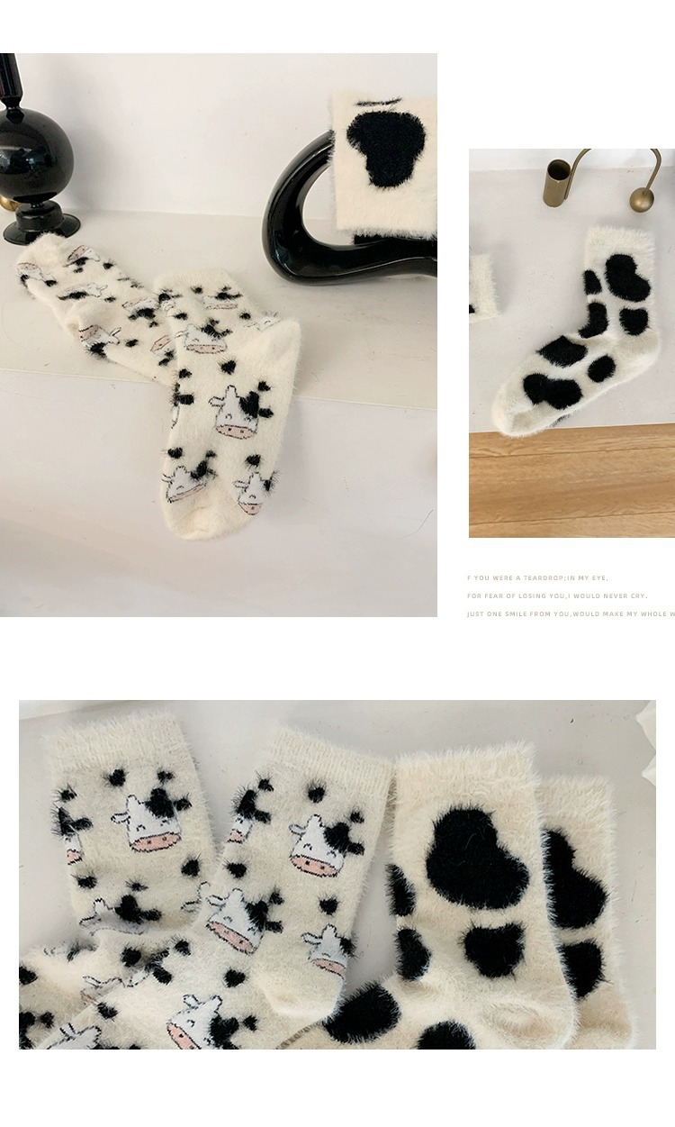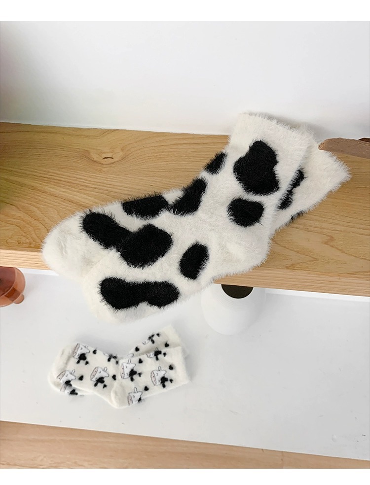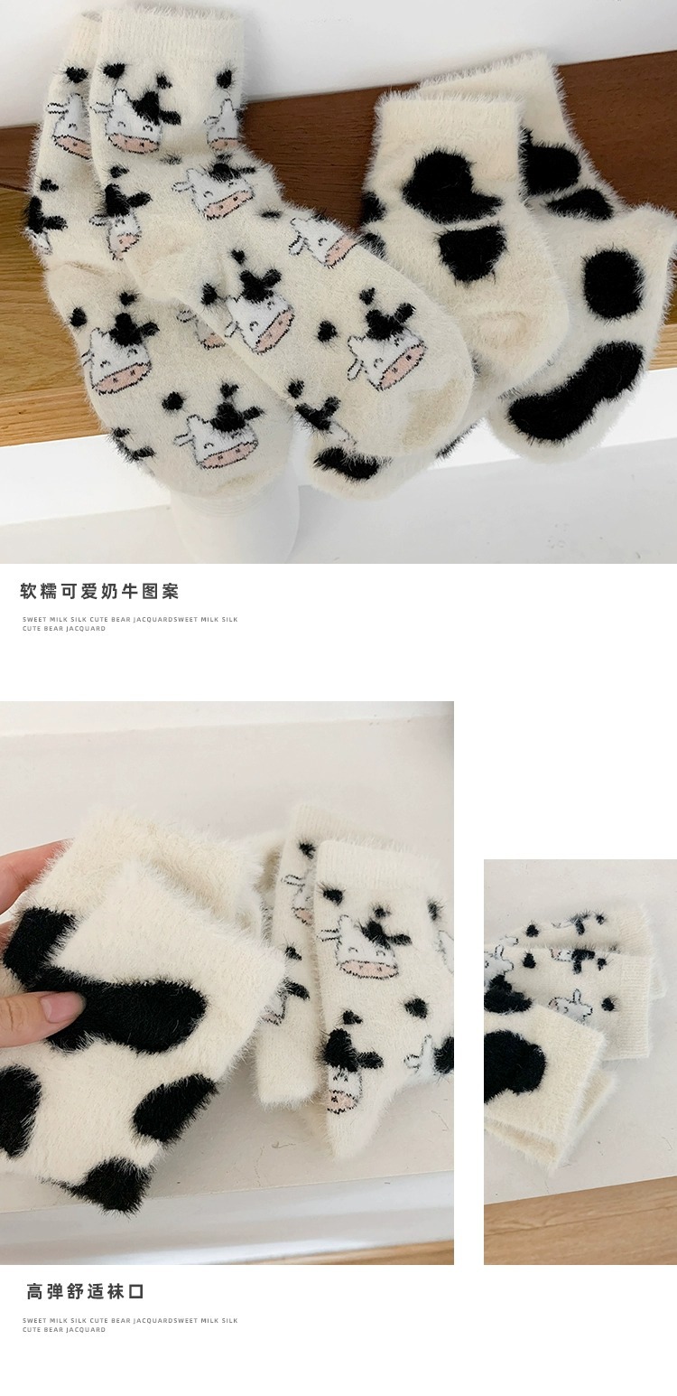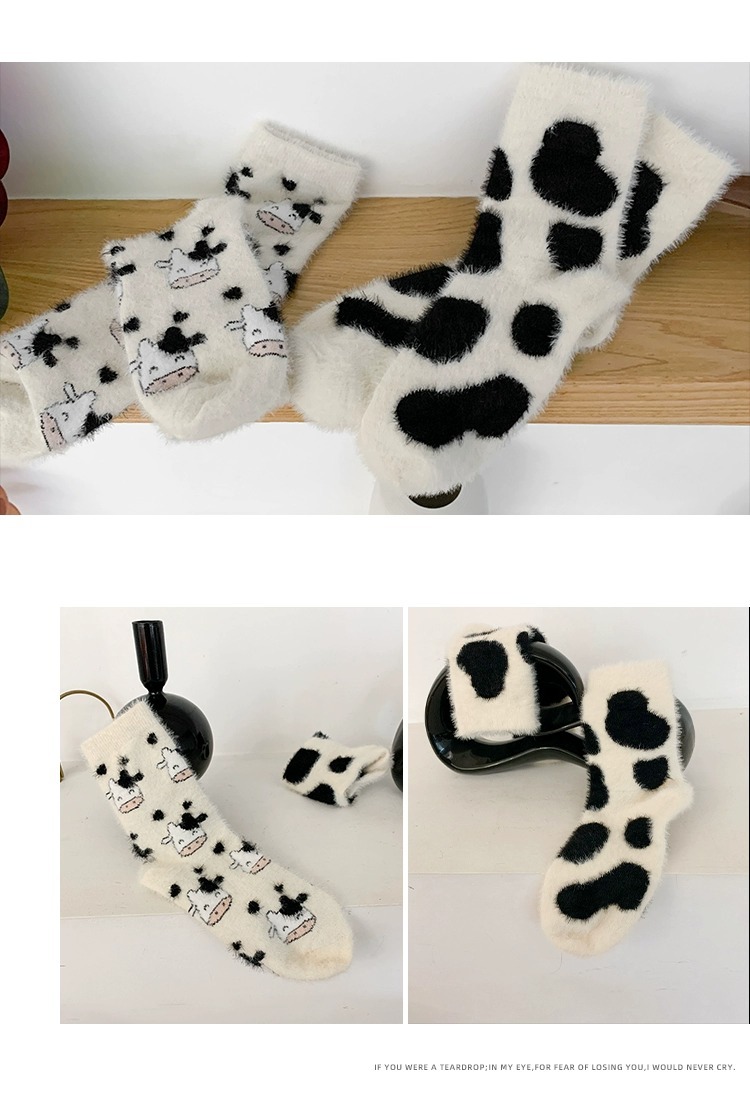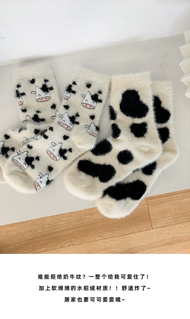 ミンクの靴下の女性の中筒の靴下の秋冬のベルベットの厚い保温の漫画の長い筒の家の床の月子の睡眠の靴下