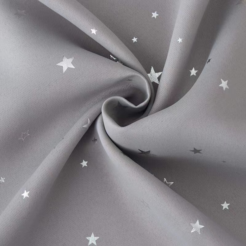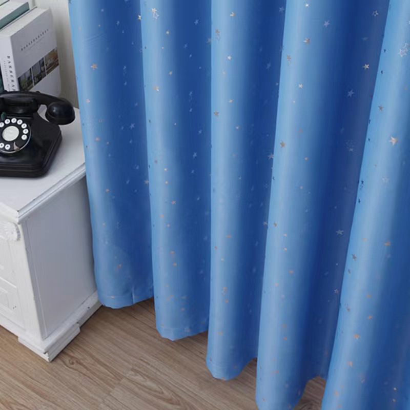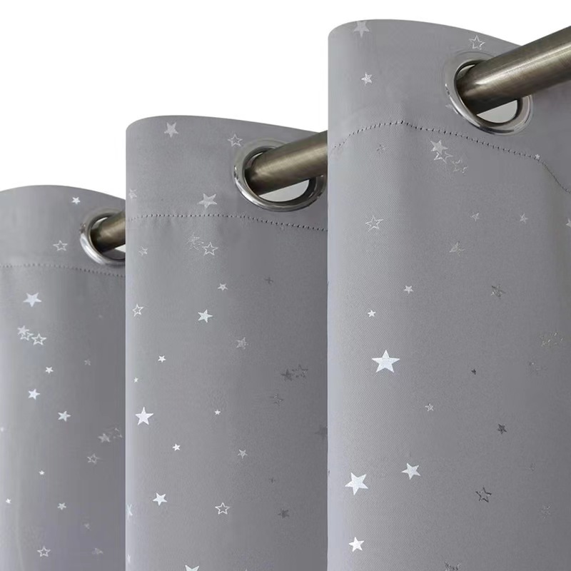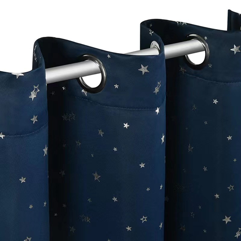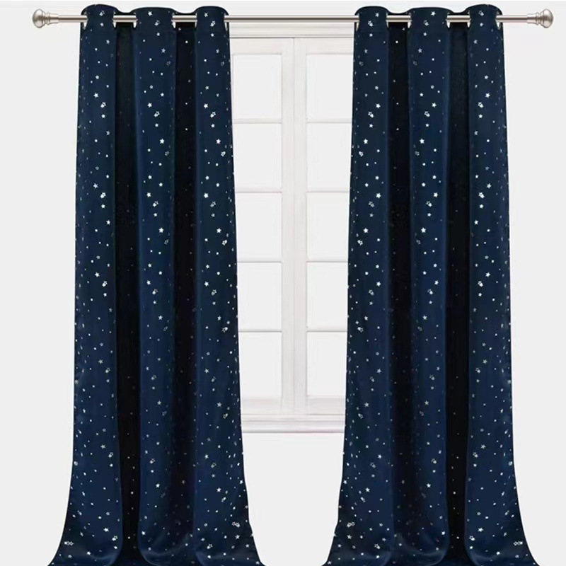 高遮光・不透明仕様のクロスボーダー仕入れ既製カーテン、寝室用高級感のあるドアカーテン、星柄銀箔押し吊り下げリング付き生地卸売