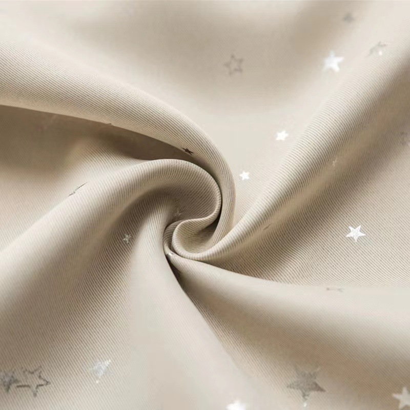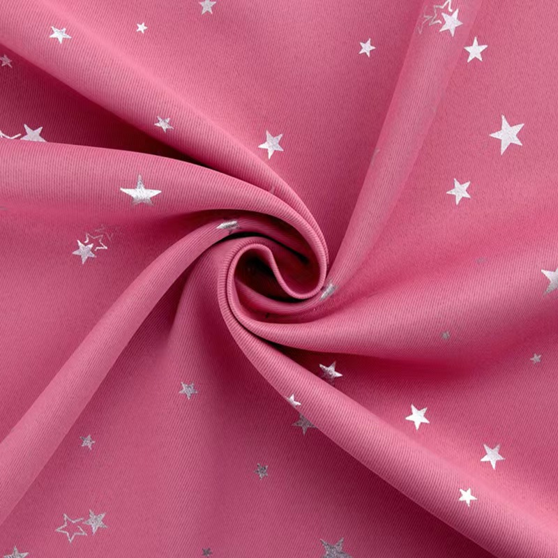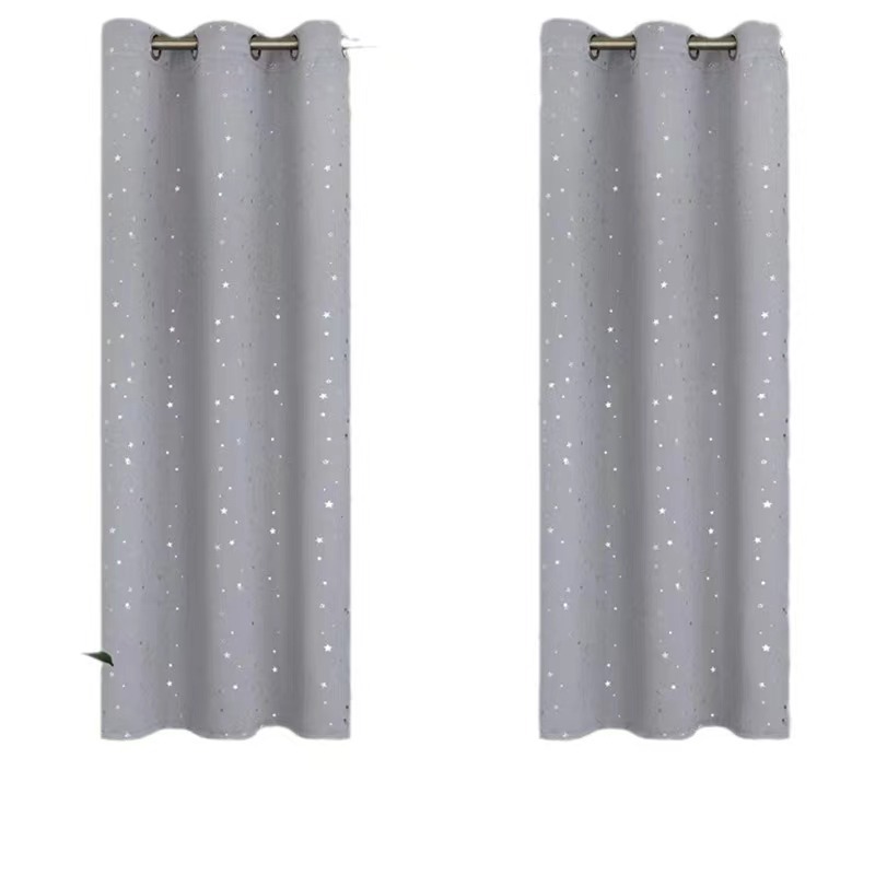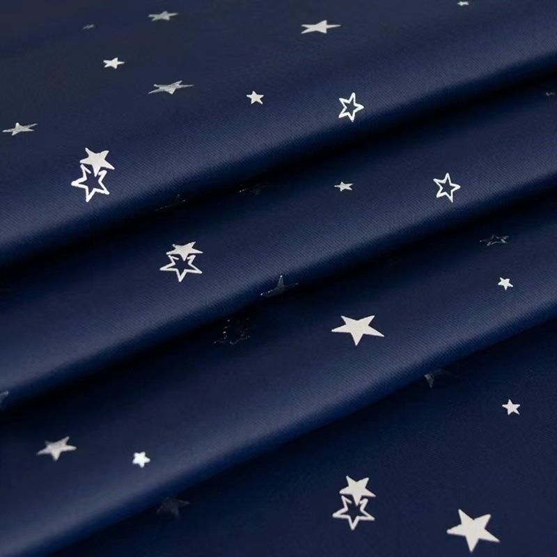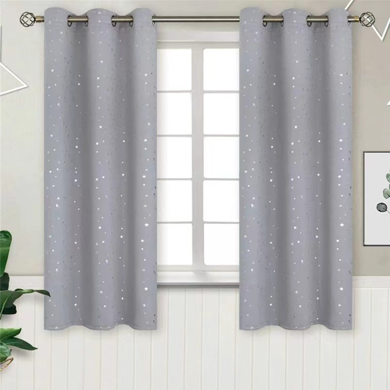 高遮光・不透明仕様のクロスボーダー仕入れ既製カーテン、寝室用高級感のあるドアカーテン、星柄銀箔押し吊り下げリング付き生地卸売