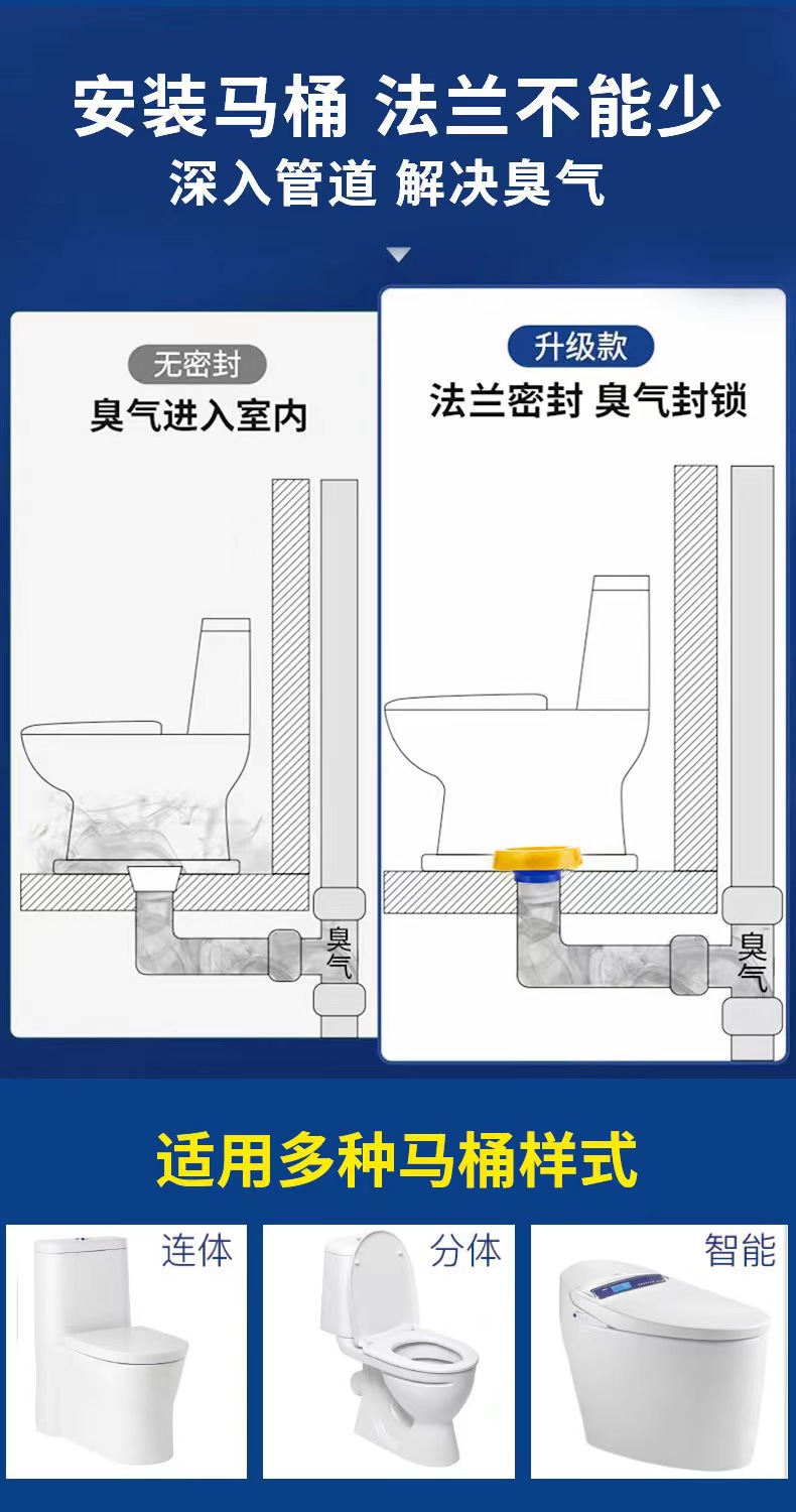 不锈钢马桶法兰密封圈防漏防臭坐便器底部一体式加厚胶圈配件大全
