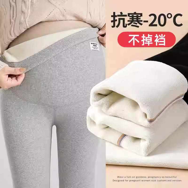 孕妇打底裤加绒加厚保暖螺纹外穿高腰羊羔绒棉裤大码200斤孕晚期