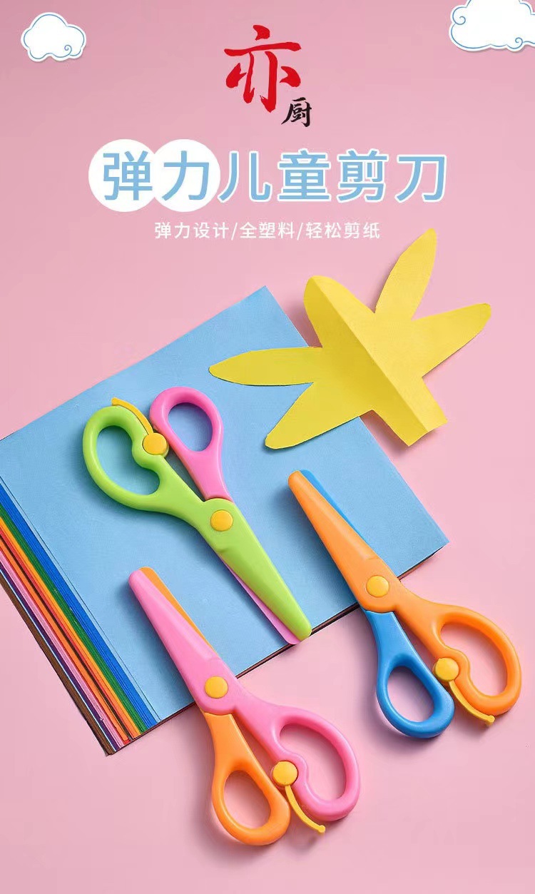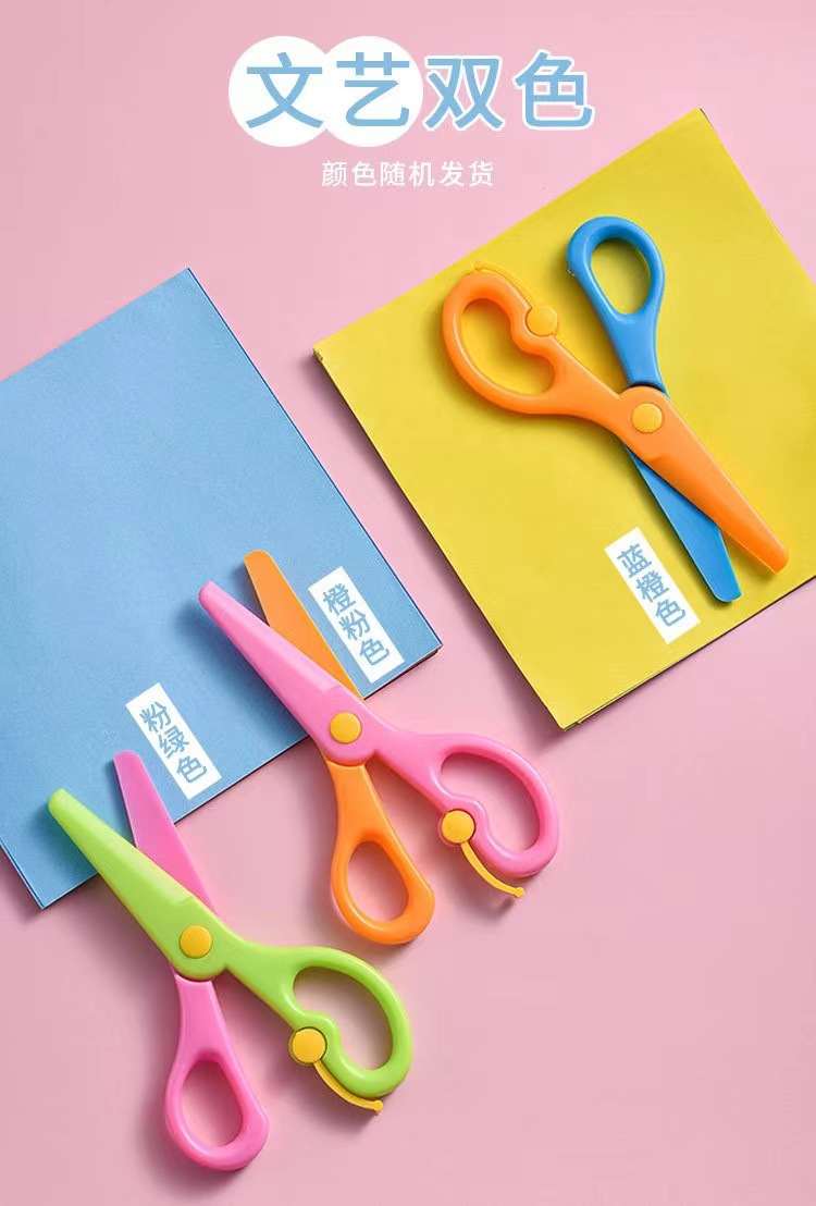 カラープラスチック児童学生はさみ幼稚園アニメカット紙オフィス文房具弾力美術小はさみ家庭用