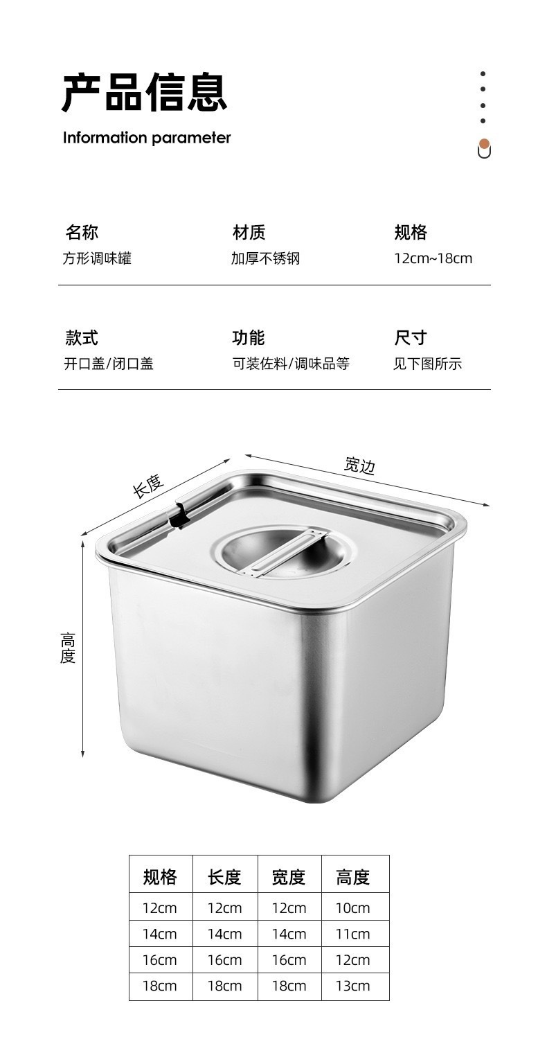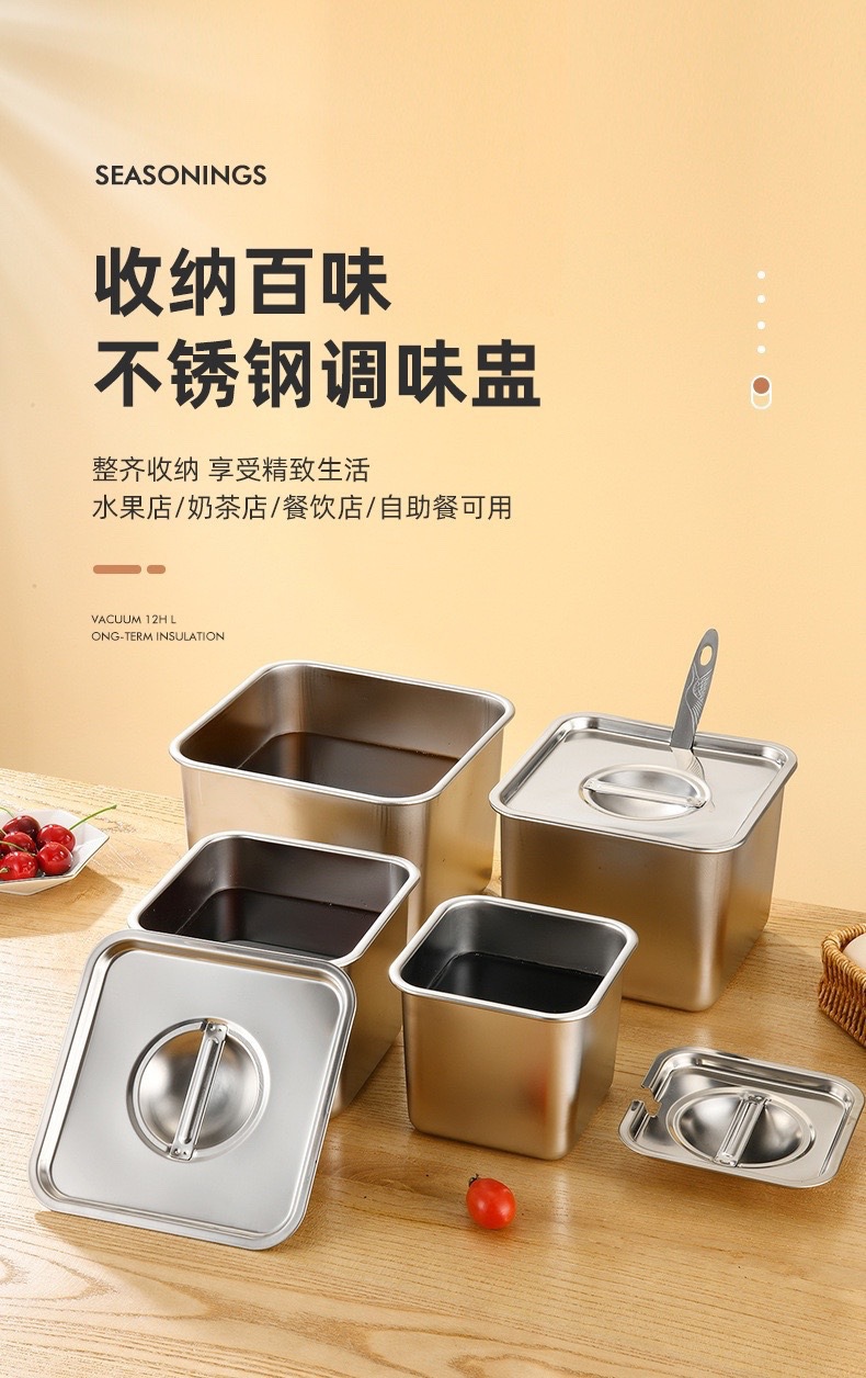 304ステンレス角型ジャム盆蓋付き四方盆業務用キッチン味杯調味料箱調味料箱調味料桶