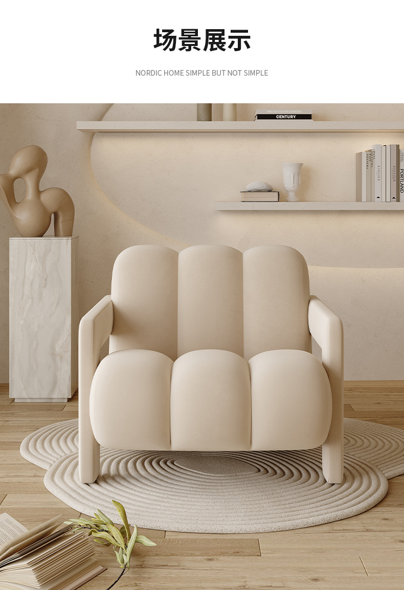 奶油风客厅单人沙发小户型实木单椅侘寂风懒人休闲椅简约设计师款