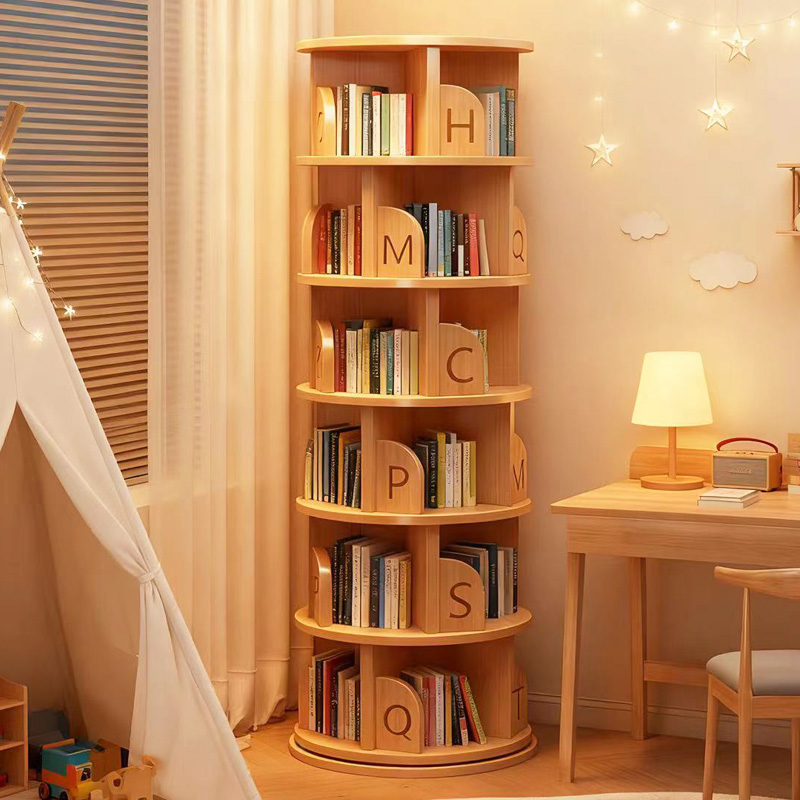 实木旋转书架家用客厅简易省空间书柜儿童落地绘本架子字母收纳柜