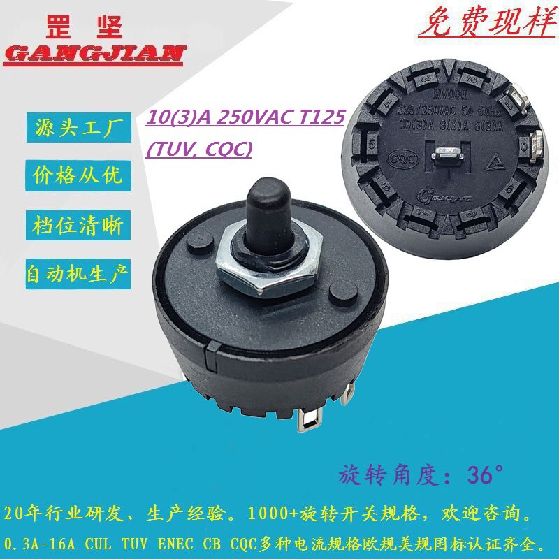Rv005円形角つまみスイッチを供給します。リセット11シフトスイッチ付き30度45度回転スイッチです。