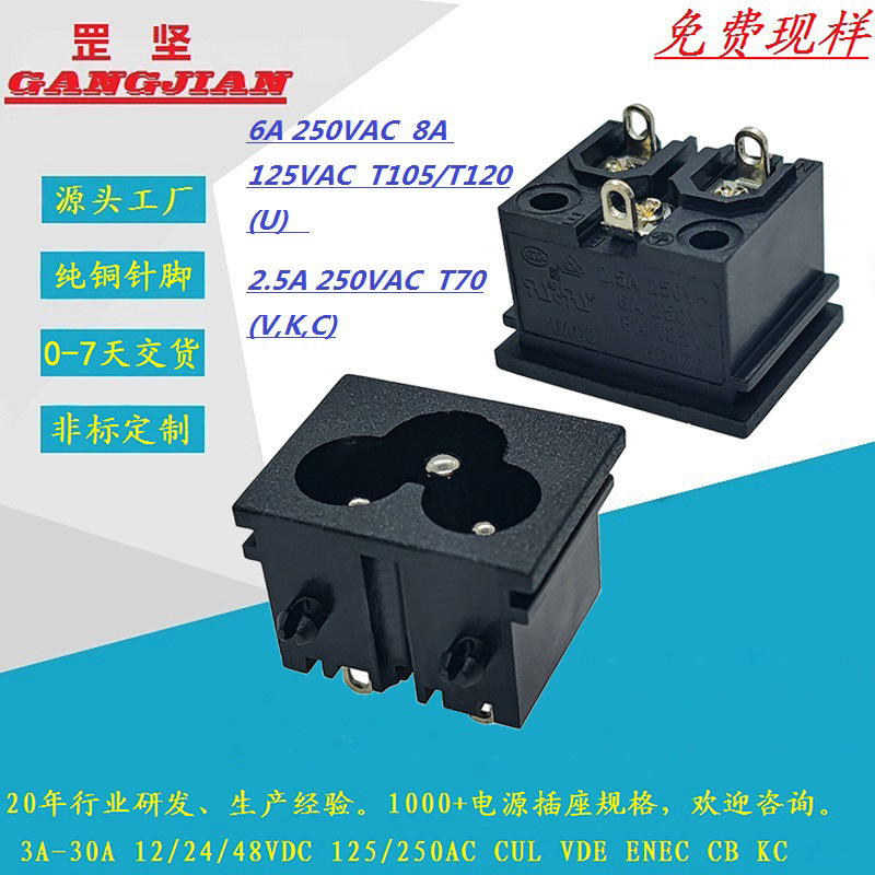 広東工場直販u/l vde kc認証梅型c6黒色電気機器3p電源コンセント