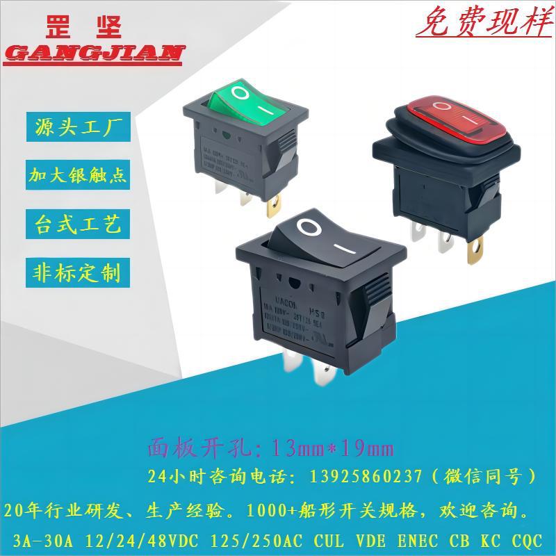 生産販売9.5*21小型美標開孔6.8*19堅ピン/直角ボタン2速/3速船形スイッチ
