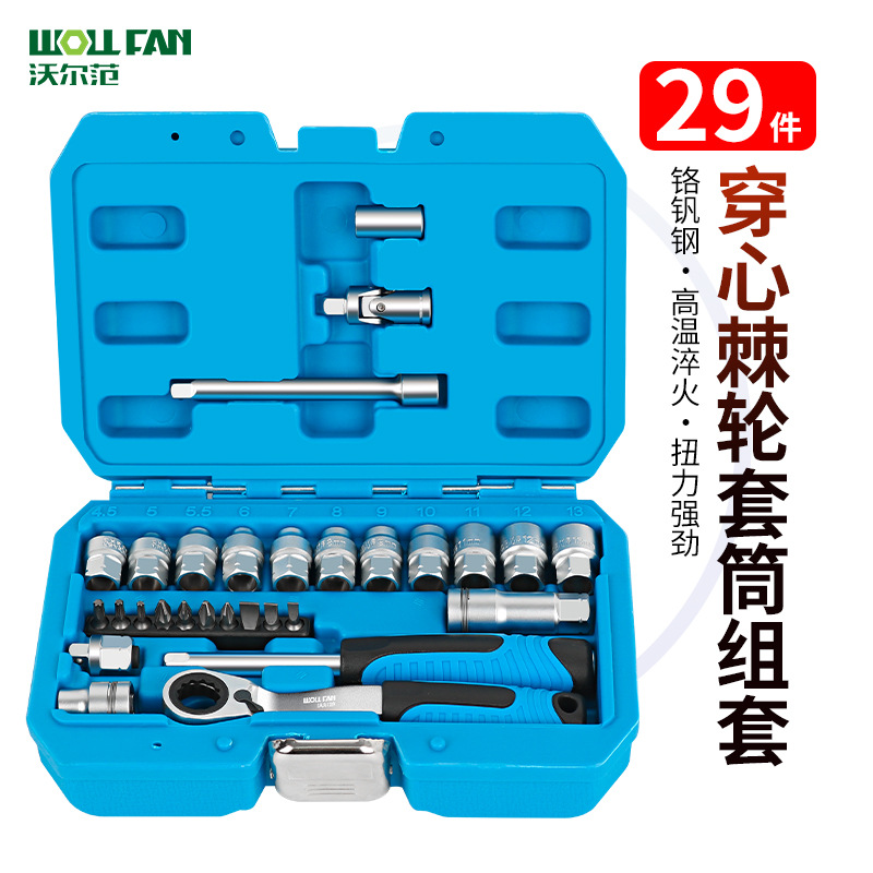 29ピース穿心ラチェットレンチセット穿透式スリーブセット12角ドライバーロット継手セットツール
