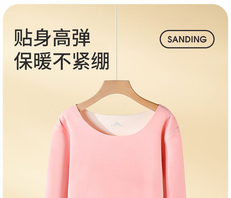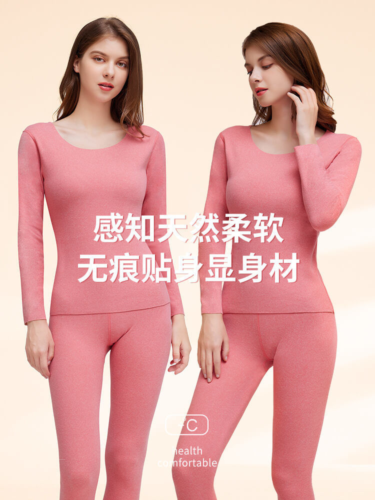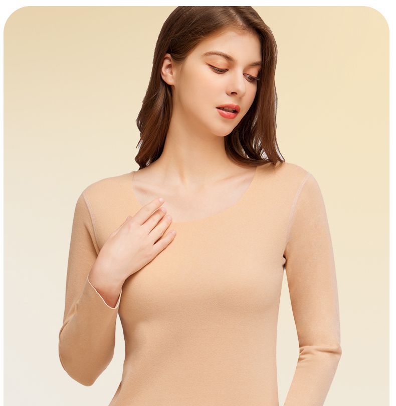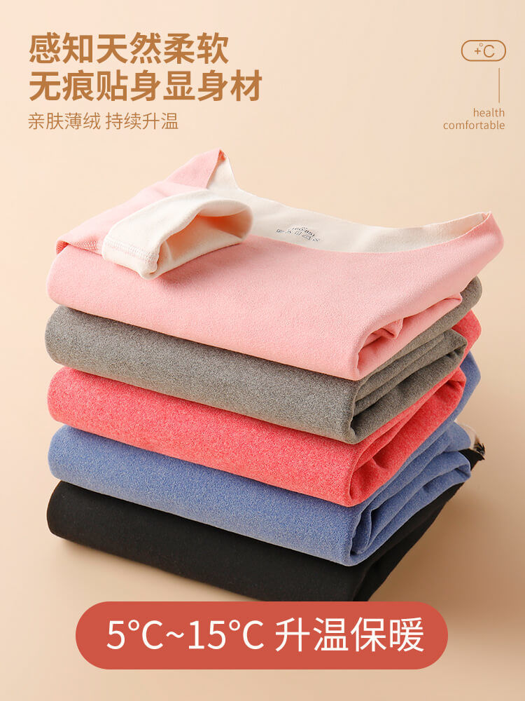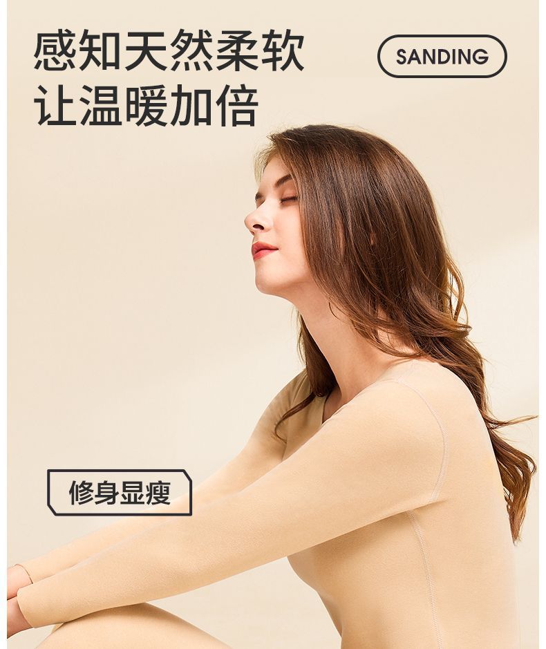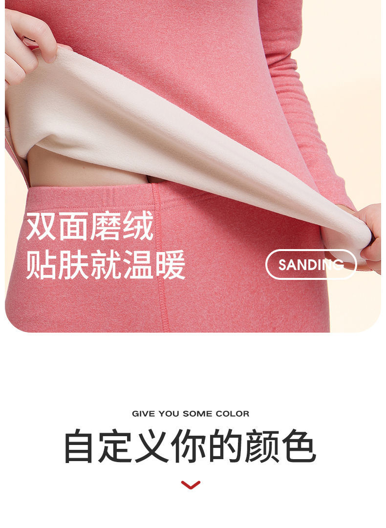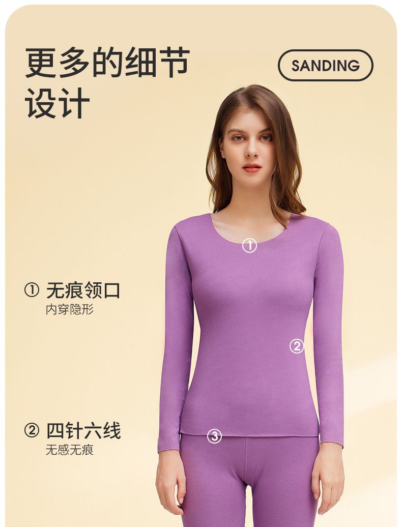 徳絨女士保温下着無痕発熱薄金加毛底衣綿セーター冬秋衣秋ズボンセット