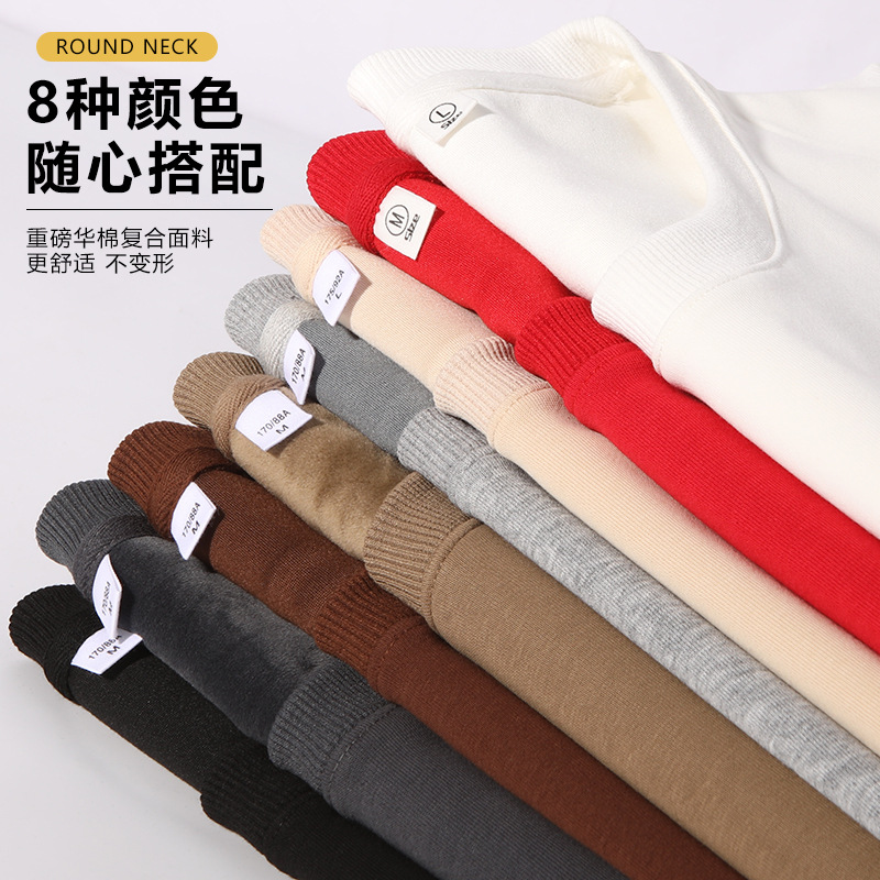 新秋冬420グラム純色丸首華綿加毛保温衛衣複合銀狐絨毛ゆるい長袖頭カバー