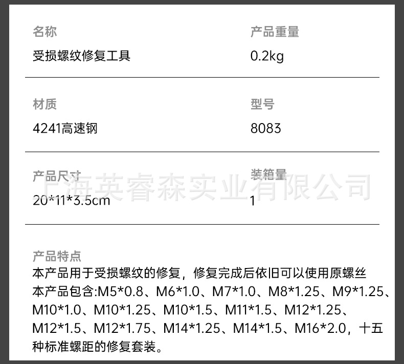 25件套螺纹修复工具高速钢快速攻丝适用汽修家庭维修便携式防溅水